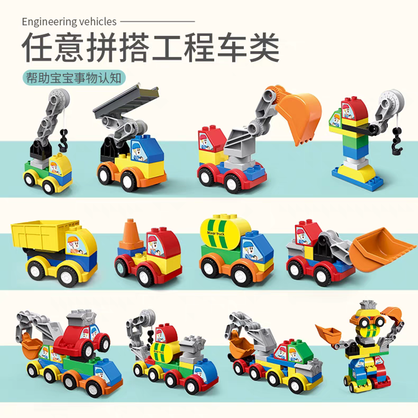 因儿乐益智百变小车拼装工程车男孩大颗粒积木儿童2创意宝宝玩具3