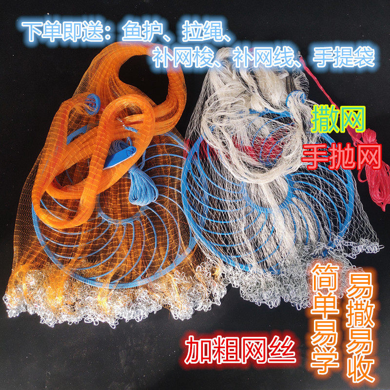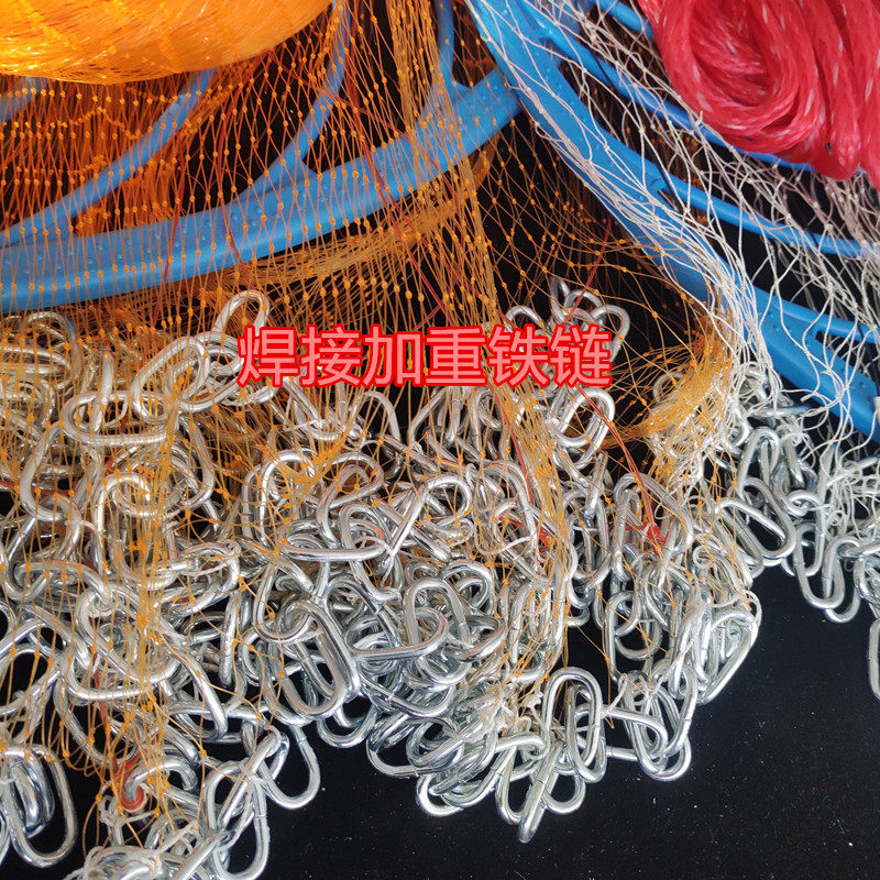 大飞盘式撒渔网手抛网鱼网新款加粗黄金丝焊接链条钢拉丝渔网撒网