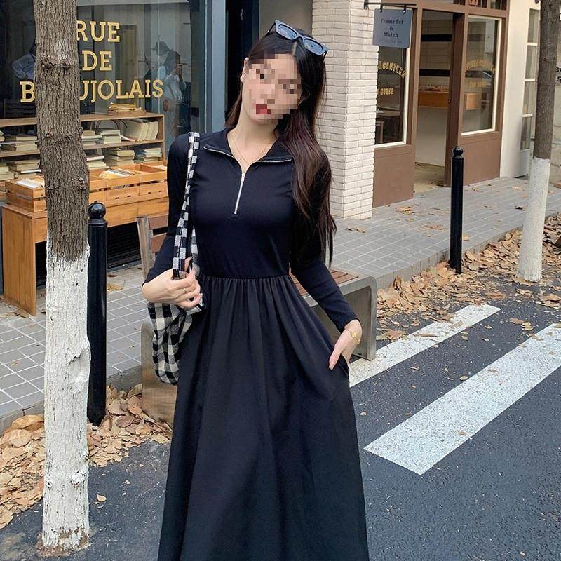 实拍有口袋 法式赫本风黑色长袖针织连衣裙子女高级感显瘦长