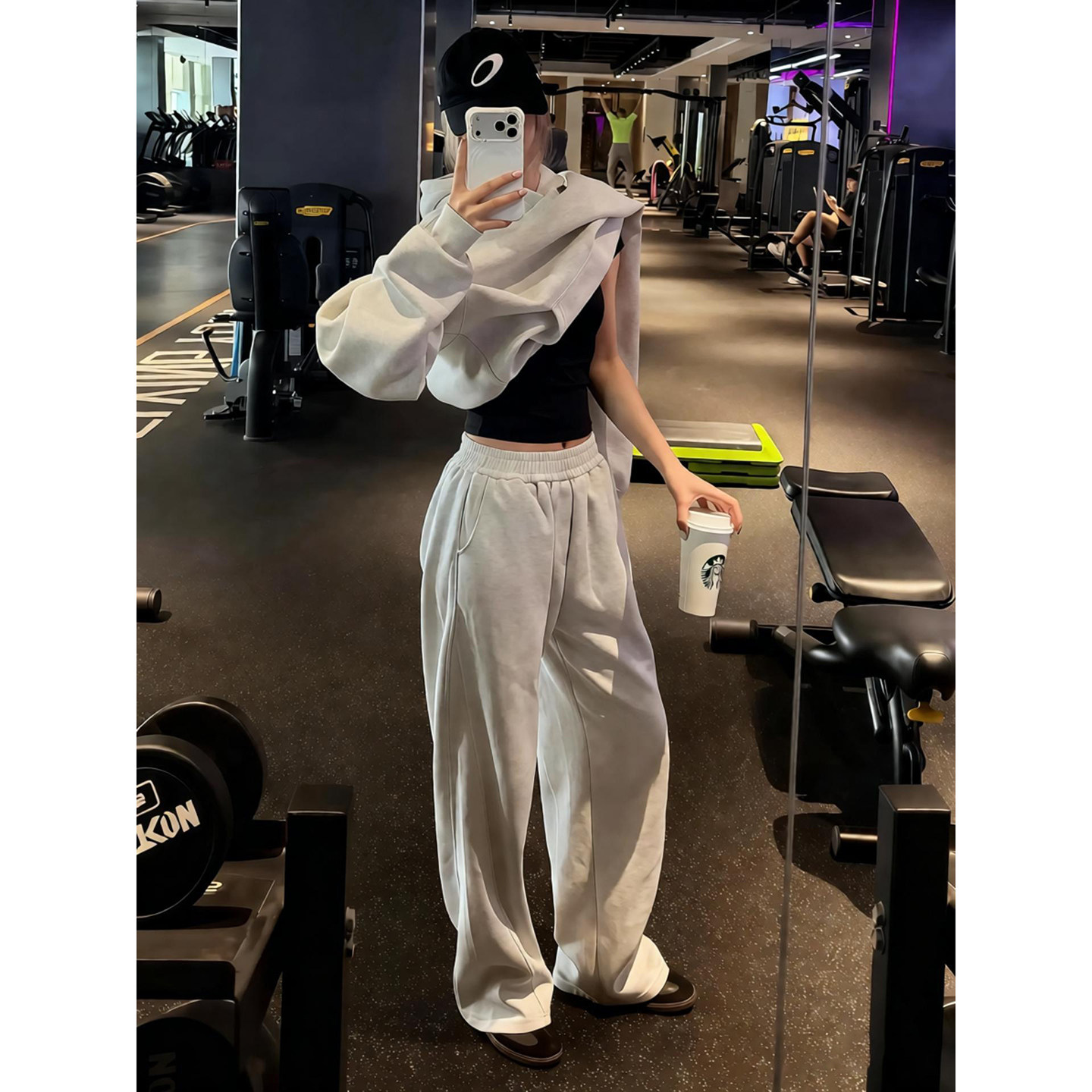 311线报网描述:美式健身运动加绒卫裤男款冬季宽松直筒阔腿