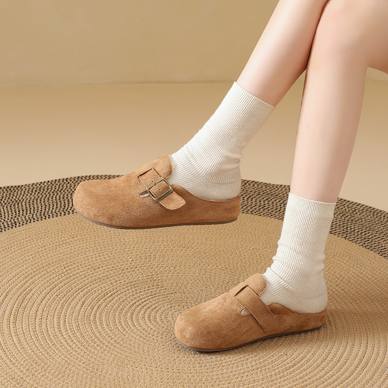 冬季新款厚底增高勃肯鞋不磨脚外穿拖鞋平底包头单鞋女加绒半拖女