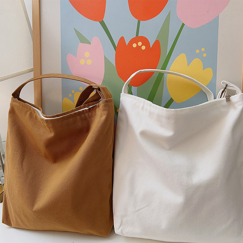 斜跨帆布包女大容量学生上课简约托特包纯色百搭拉链单肩帆布袋
