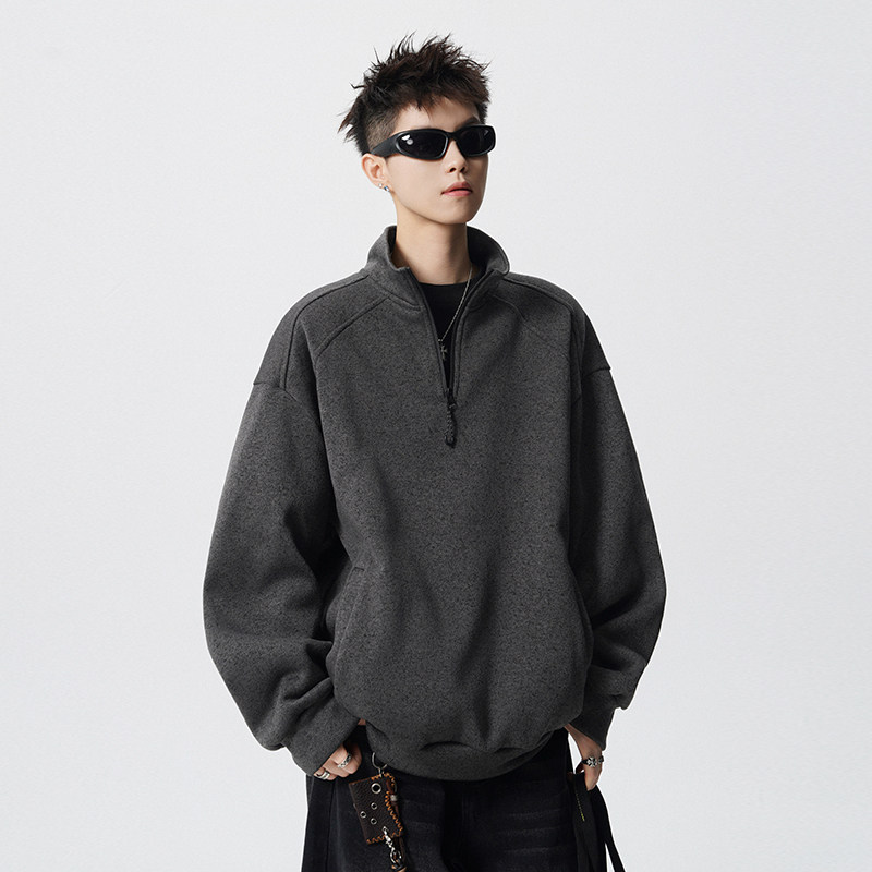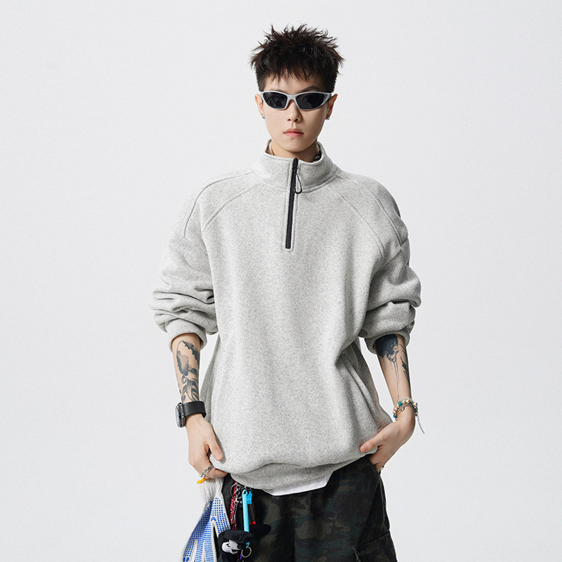 迈特优半拉链立领卫衣男女款春秋季宽松2026新款潮流美式套头上衣