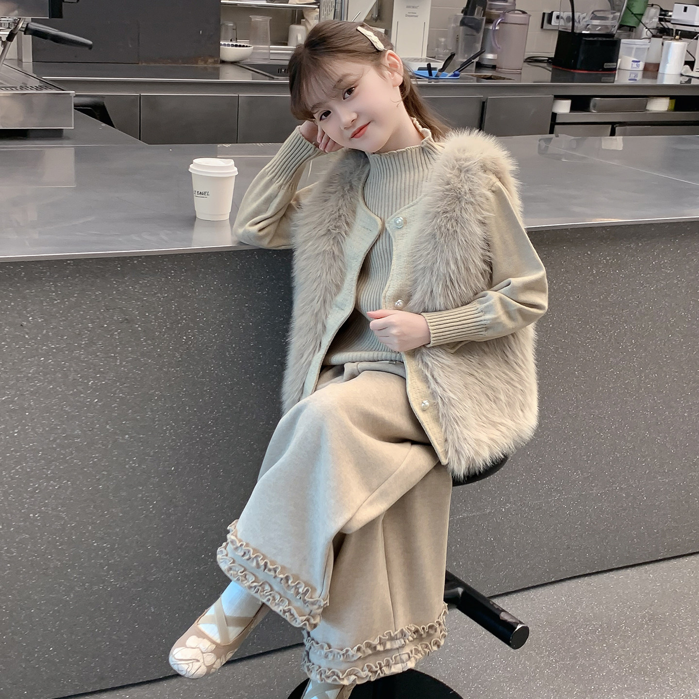 女童马甲2026新款秋冬款儿童网红洋气加厚小香风女孩冬装时髦套装