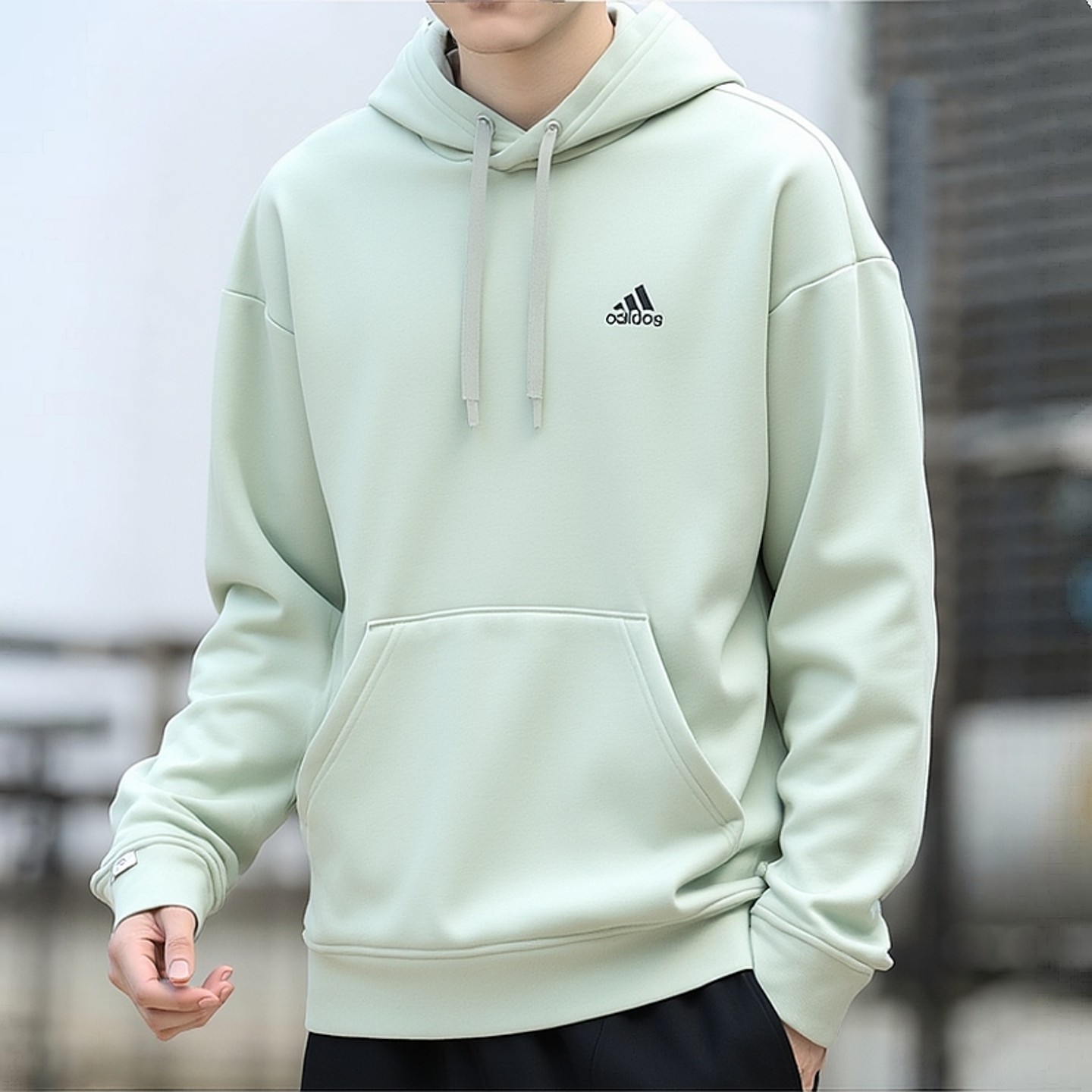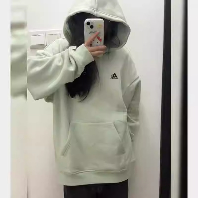 Adidas阿迪达斯连帽卫衣男加绒保暖休闲纯色简约运动套头衫潮流