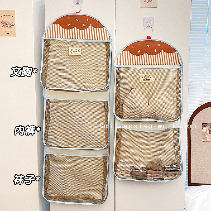 收纳袋挂式内衣网兜壁挂袜子文胸内裤三合一衣柜门后挂袋宿舍好物