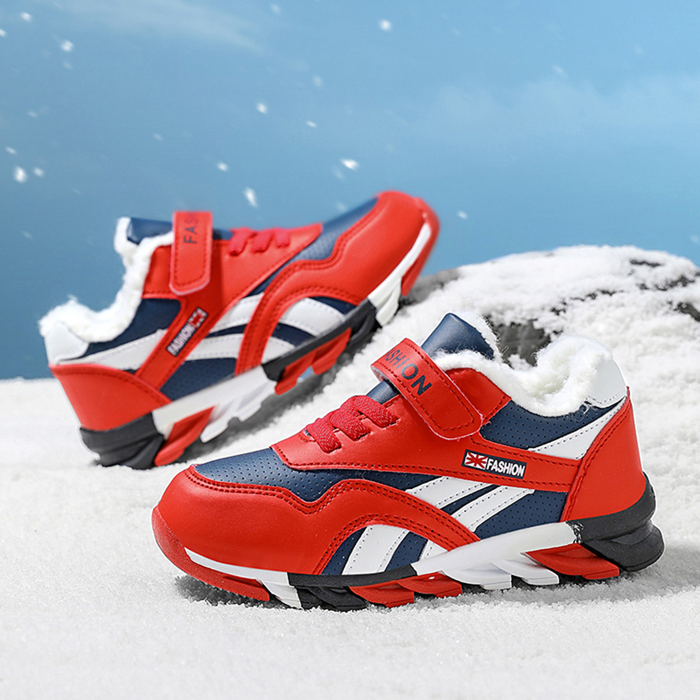 童鞋儿童运动鞋2025冬天季节女童男鞋子中大童皮面防水加绒大棉毛