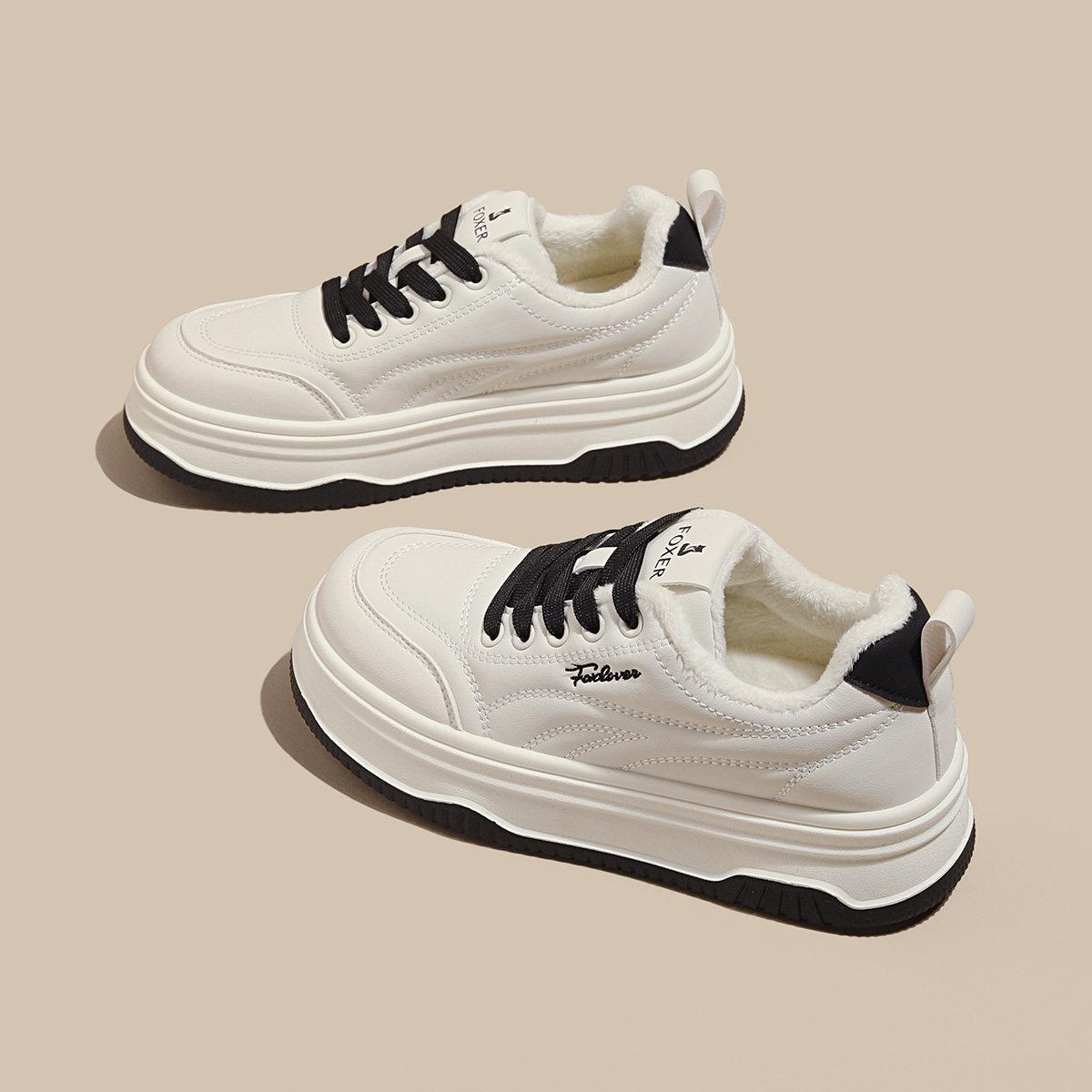 厚底板鞋女款2026年新款冬季加绒增高轻便小白鞋百搭通勤休闲女鞋