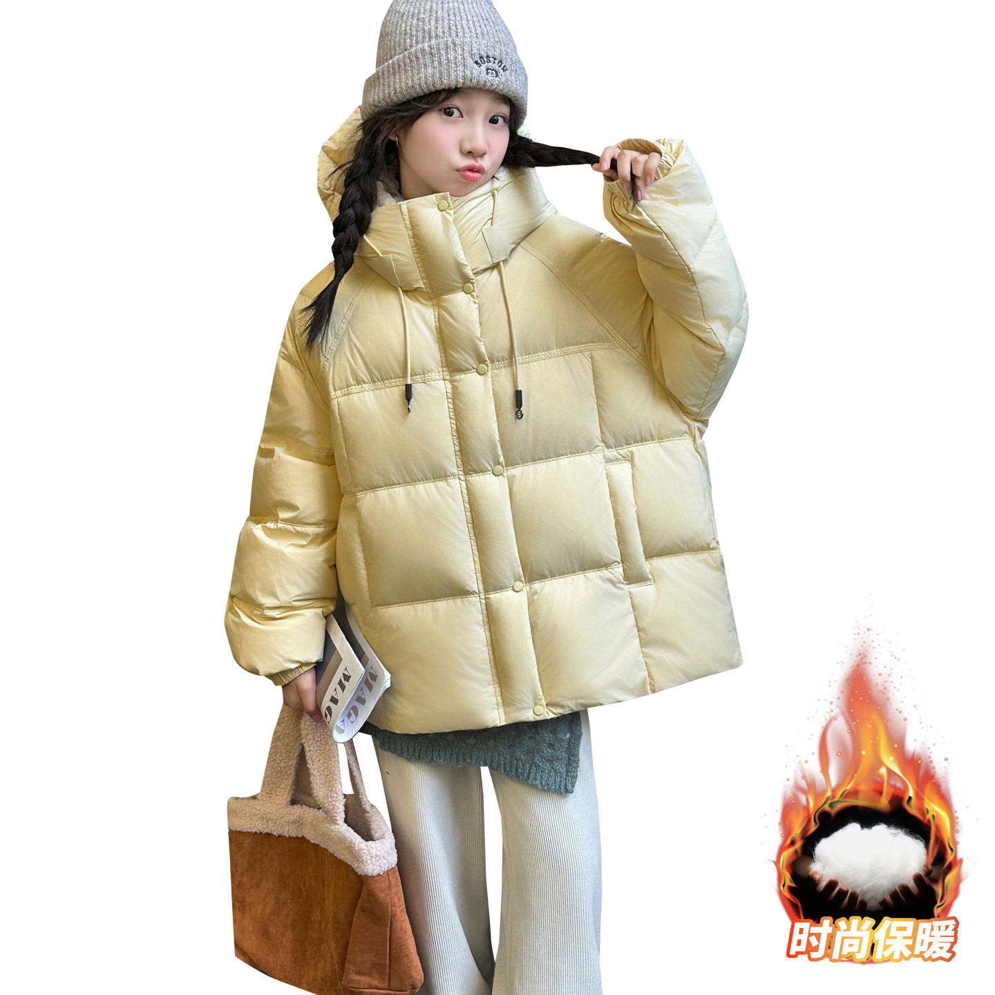 女童冬季加厚连帽外套2025年新款洋气爆款冬装初中生女孩羽绒棉服