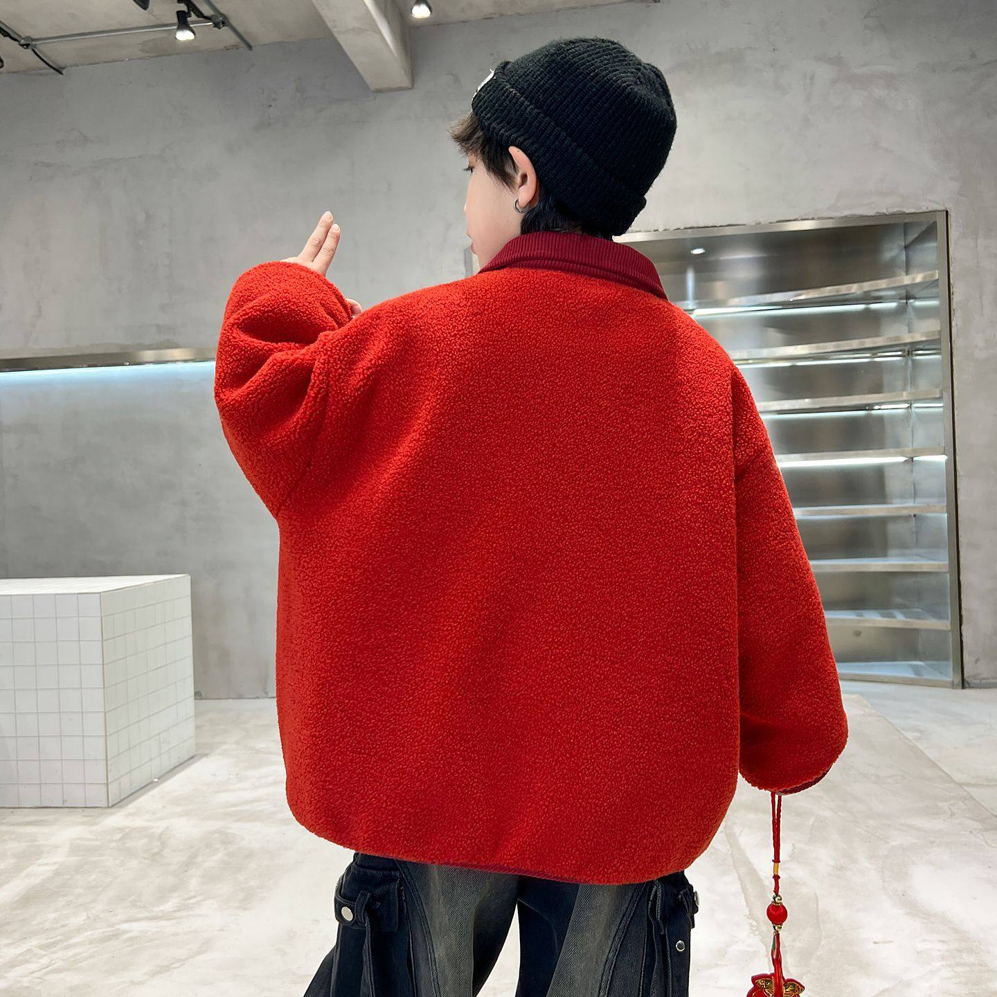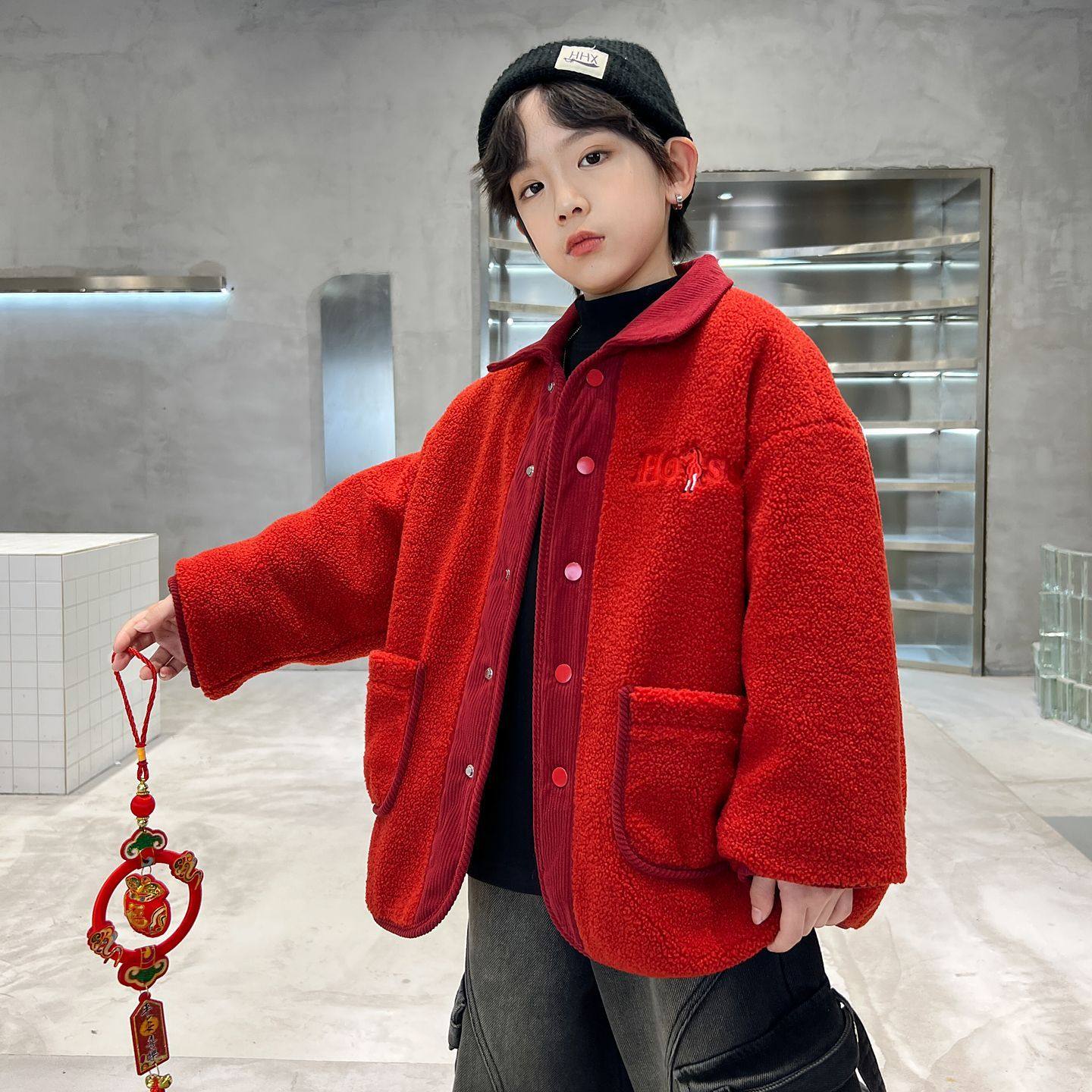 男童红色夹棉外套2026新款儿童马年拜年服中大童本命年衣服中国风