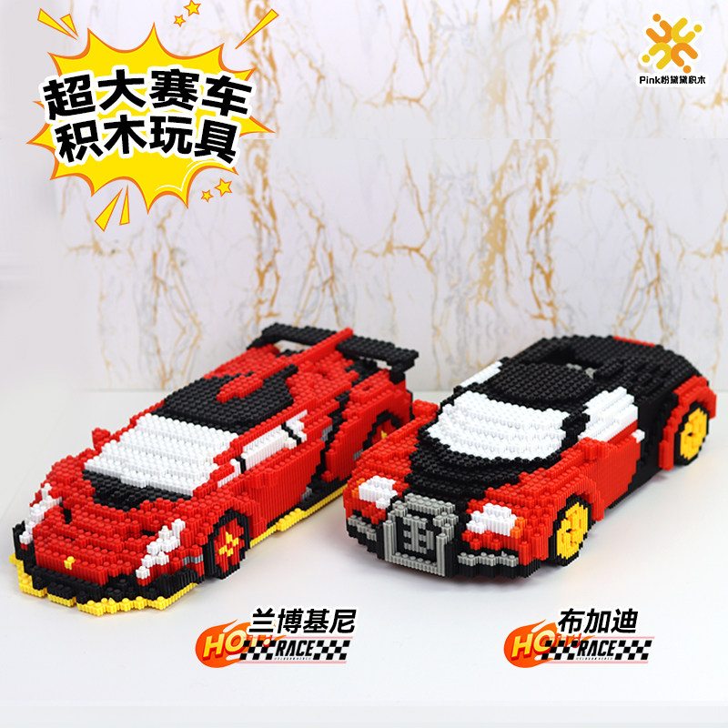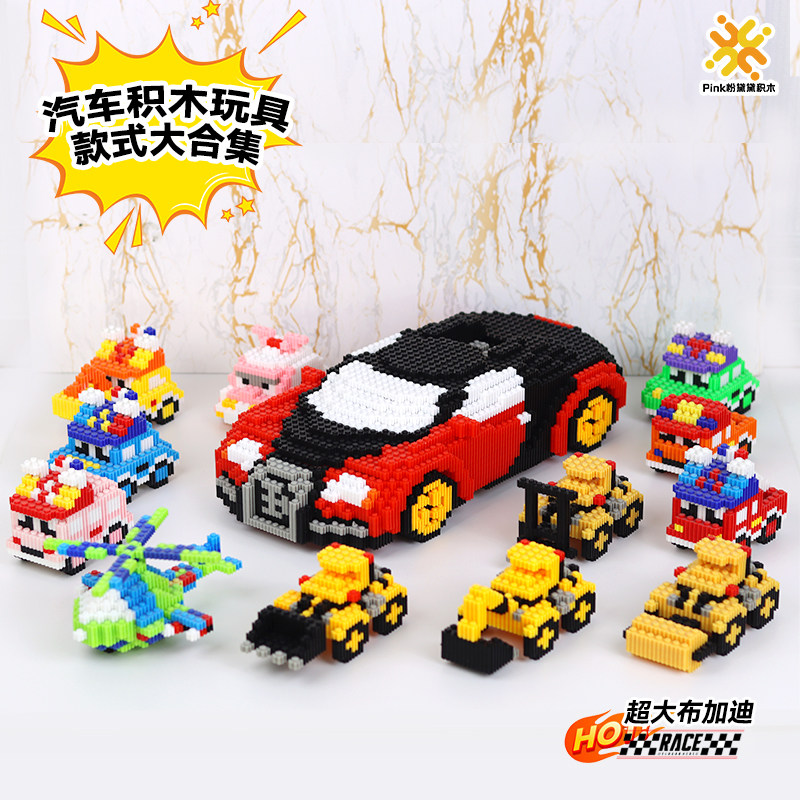 赛车警车消防车汽车积木玩具益智手工大颗粒diy生日礼物男孩儿童