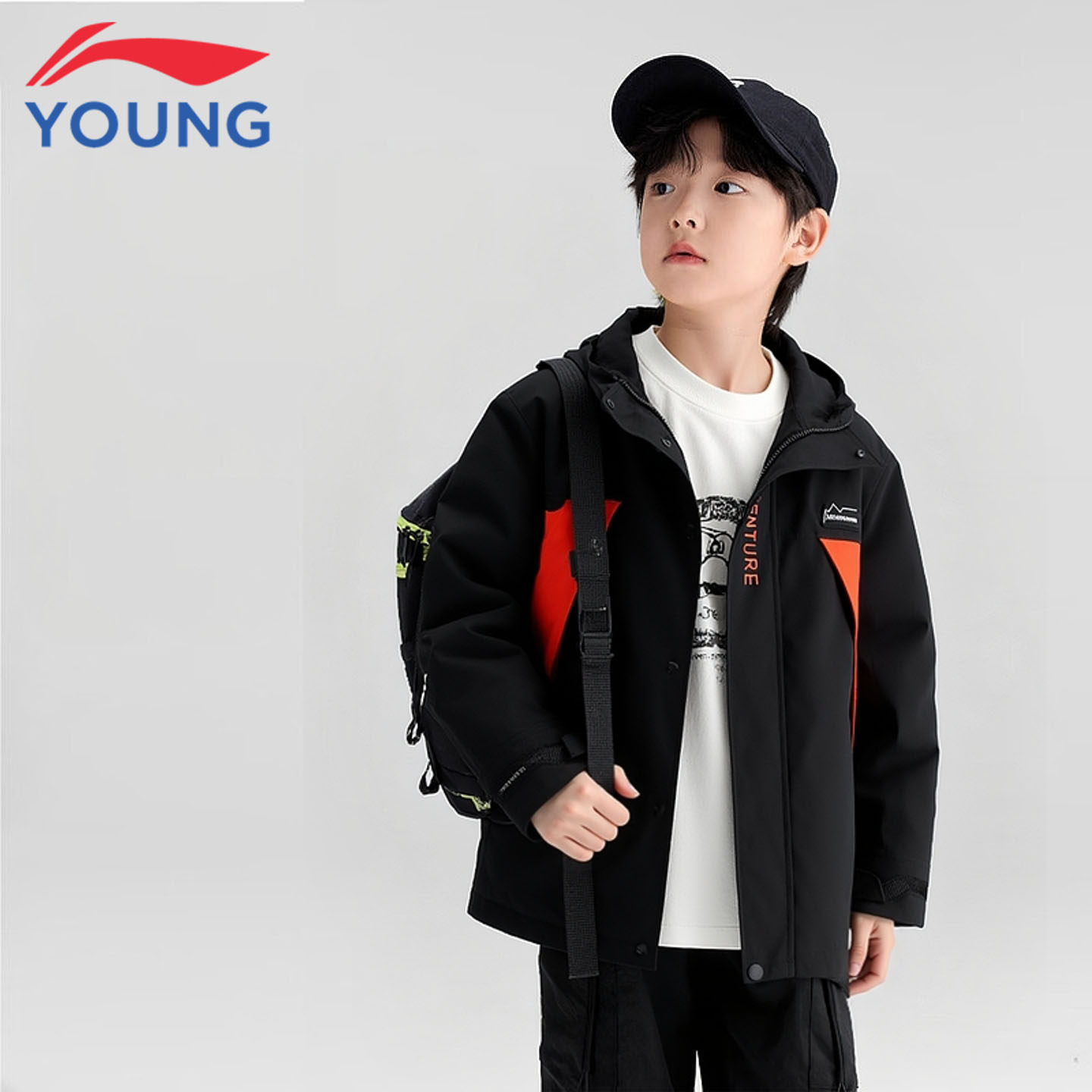 李宁童装儿童风衣男童大童26春秋新款防风泼水保暖夹克三合一外套