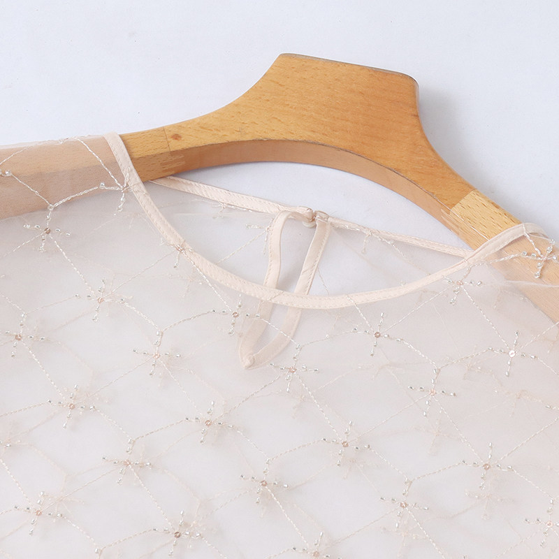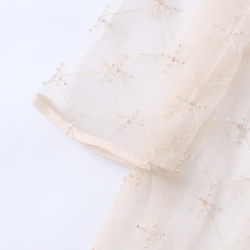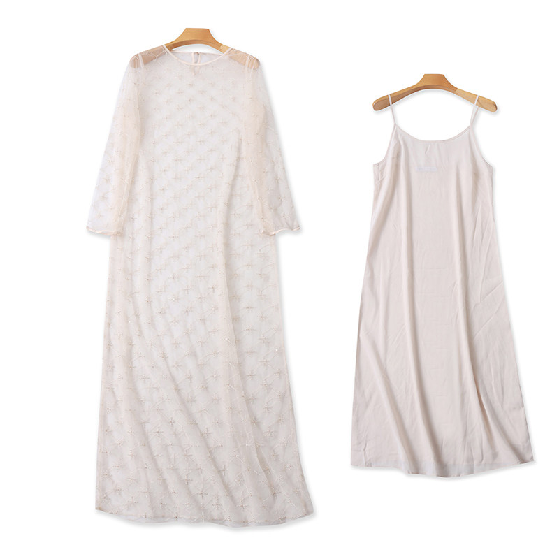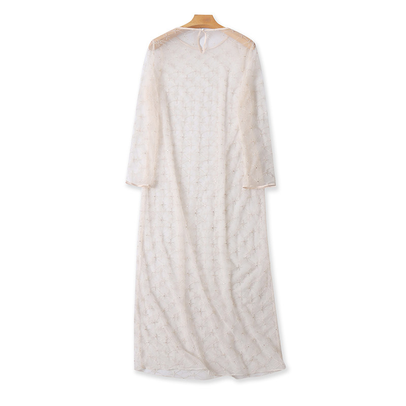 外贸欧美单女士连衣裙夏季新款圆领微透时尚性感长袖网纱长裙