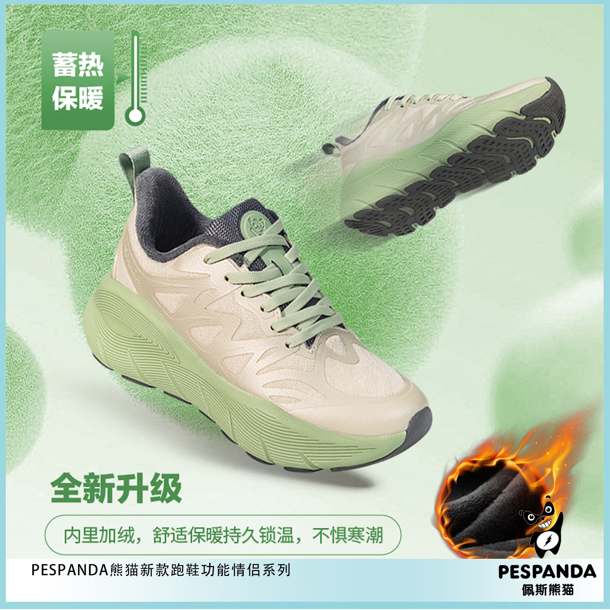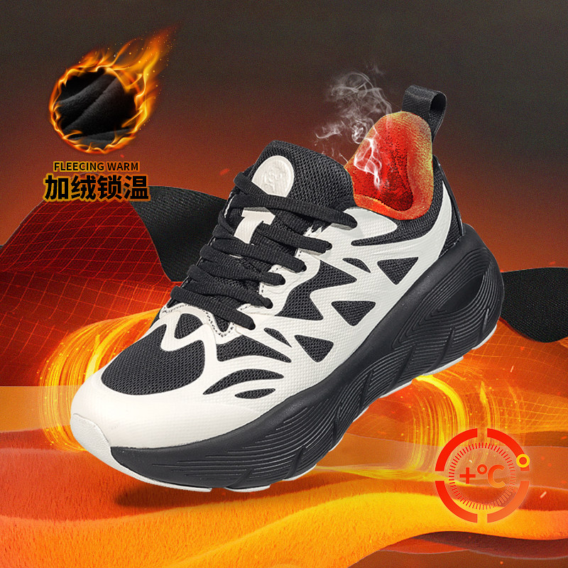 佩斯熊猫男女款加绒跑步鞋秋冬新品黑色透气缓震高弹青少年运动鞋