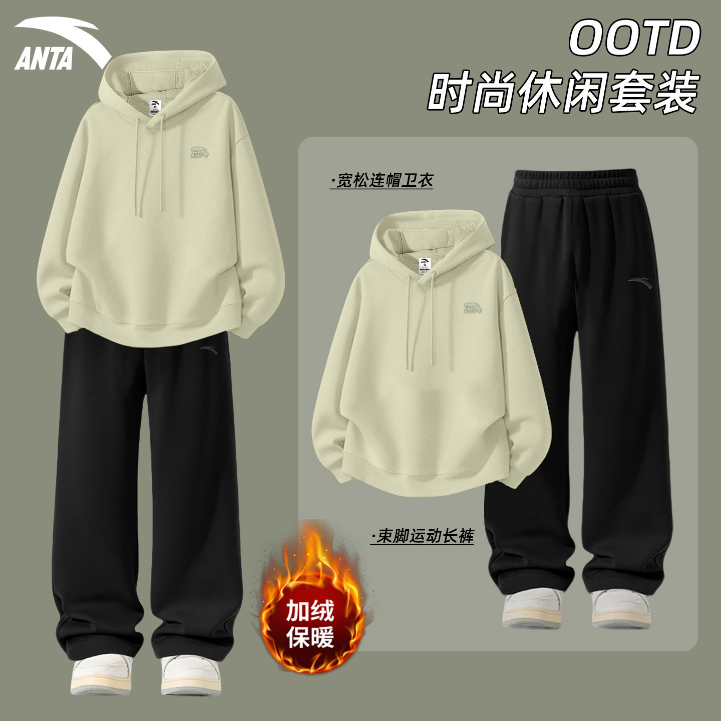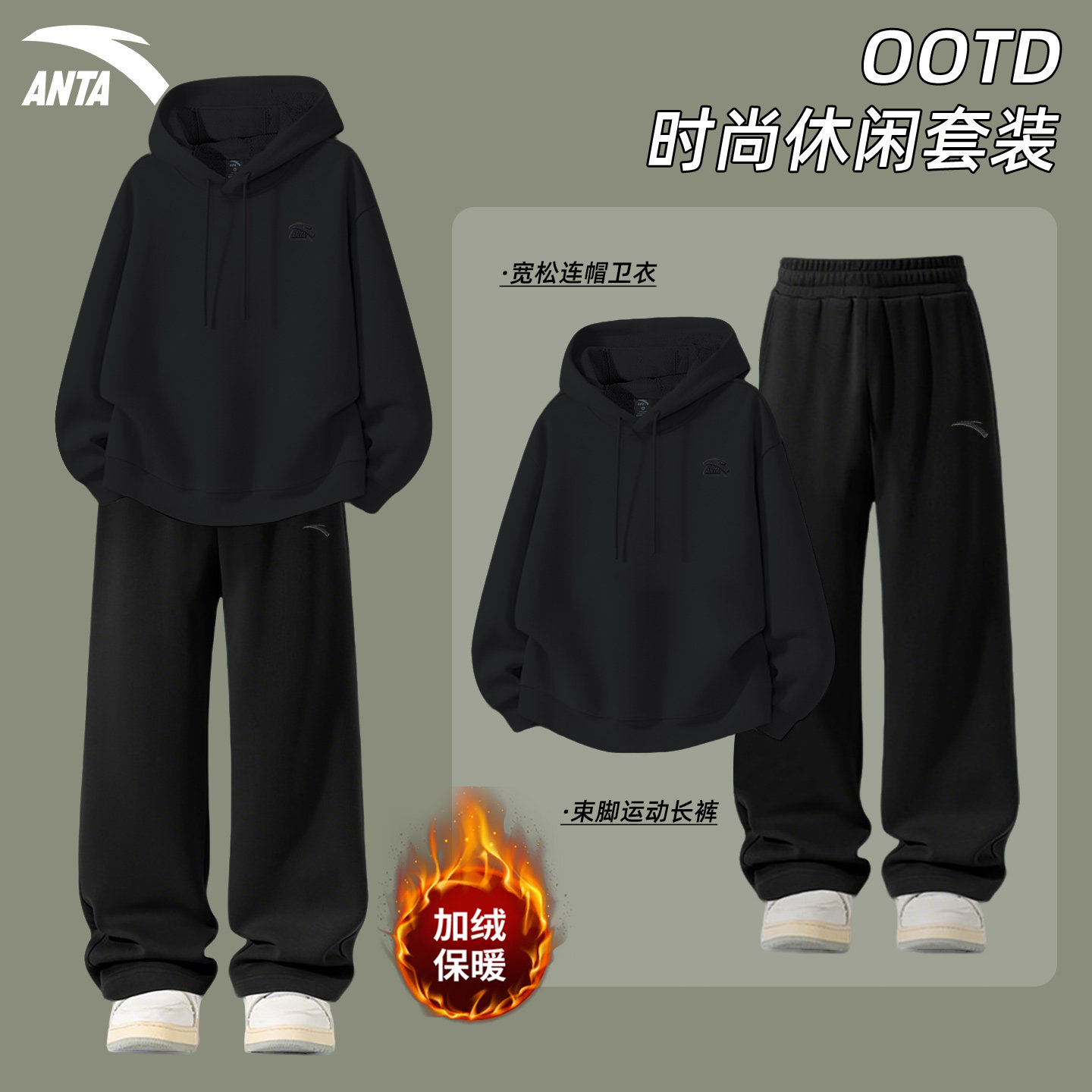 安踏官方旗舰店正品青少年套装男款2026新款连帽卫衣直筒裤运动服