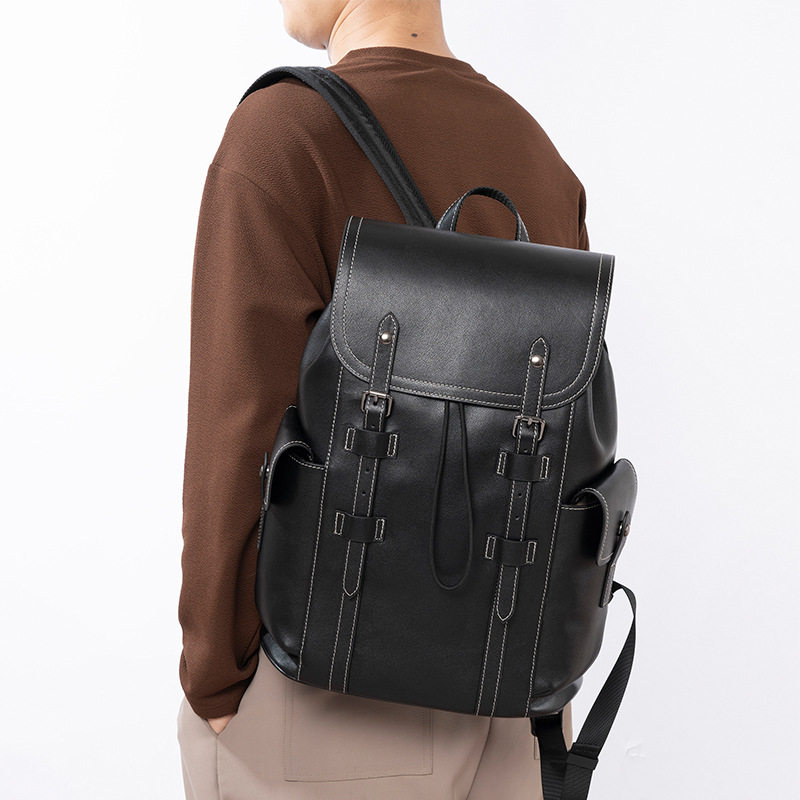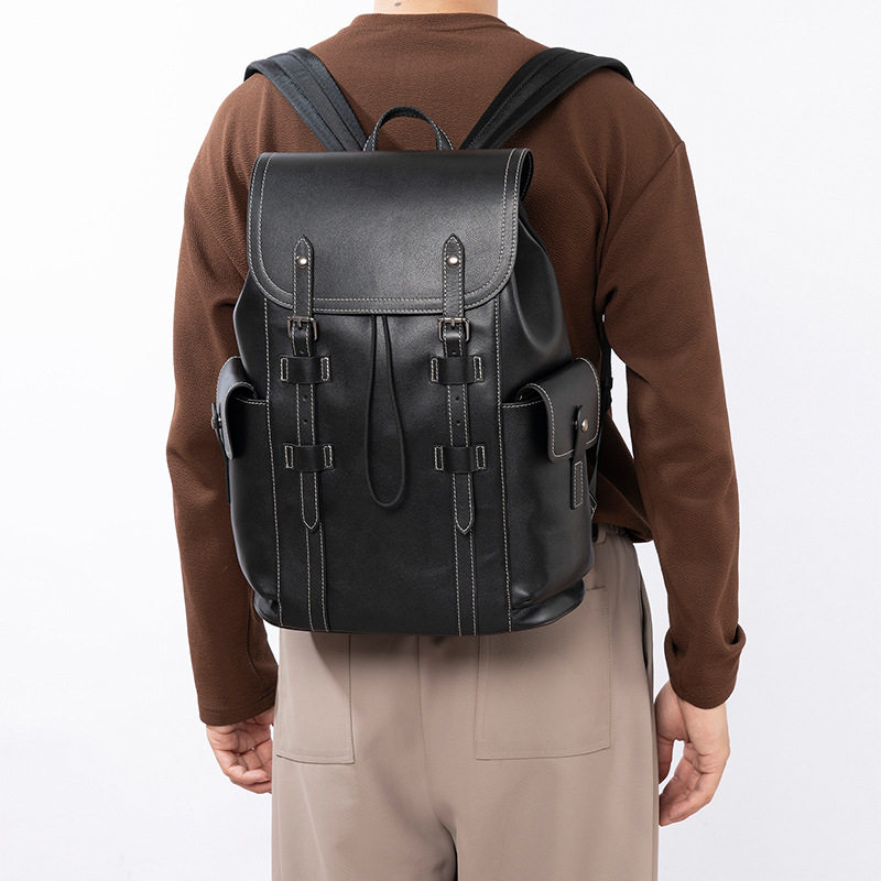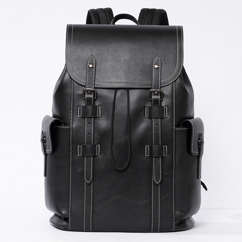 真皮双肩包男女款商务纯牛皮男士大容量背包电脑包撞色线真皮书包