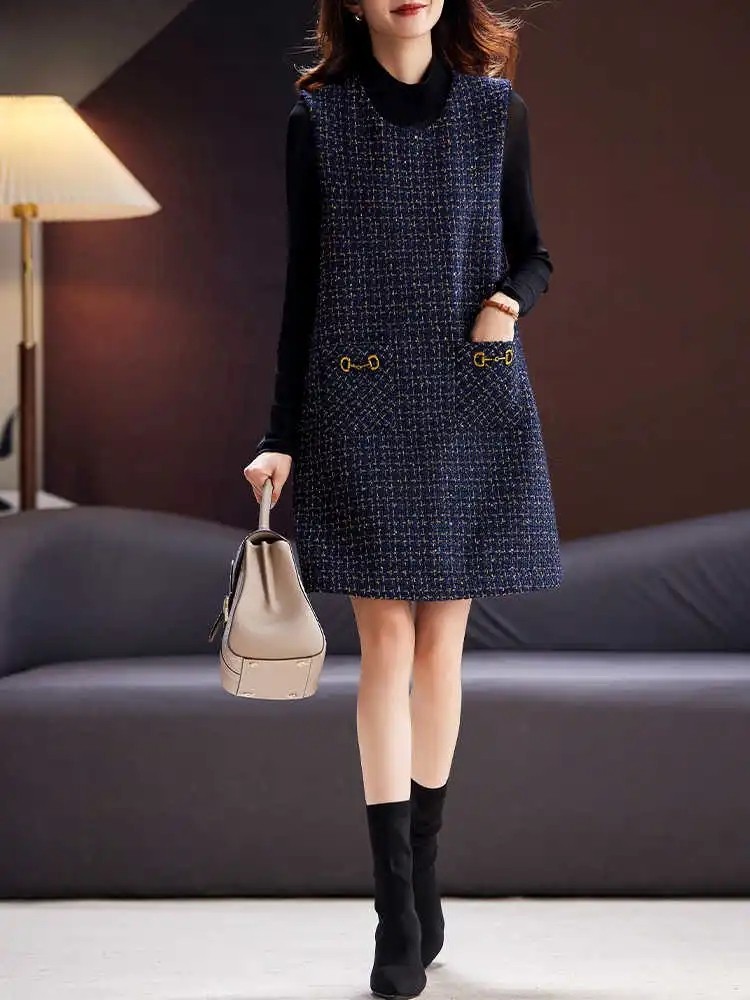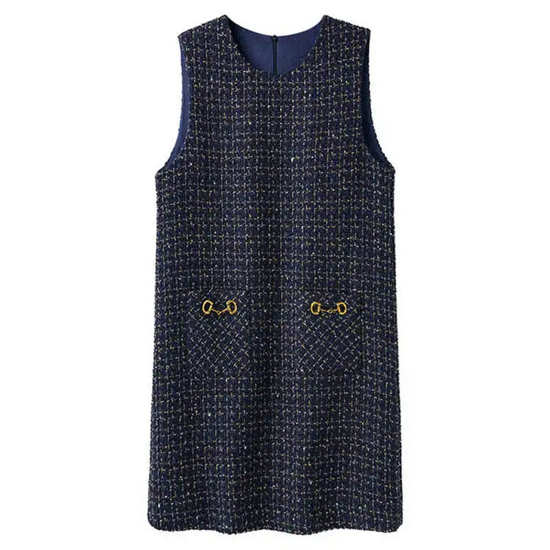 气质小香风短款连衣裙女春秋季2024年新款百搭无袖裙欧风大码裙子