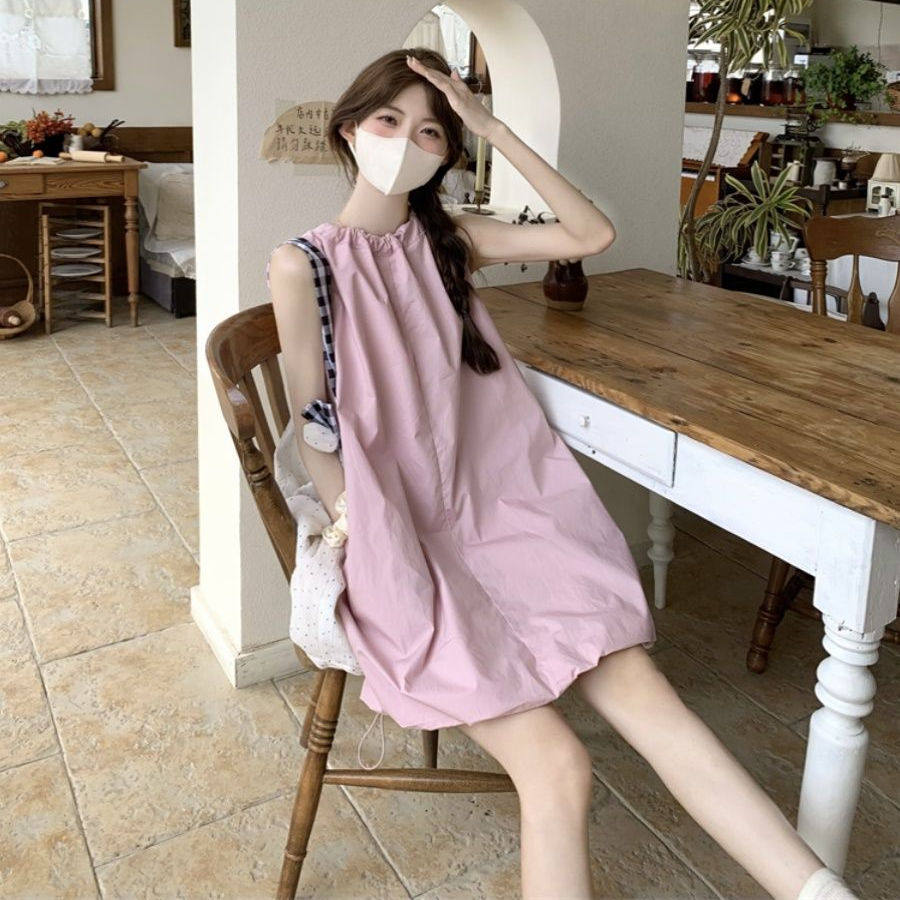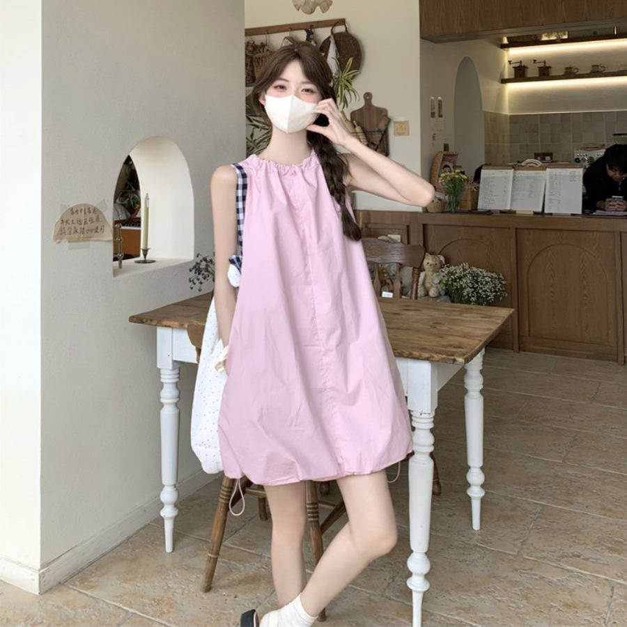 小个子无袖背心粉色甜欲连衣裙子女夏2025新款沙滩花苞裙海边度假