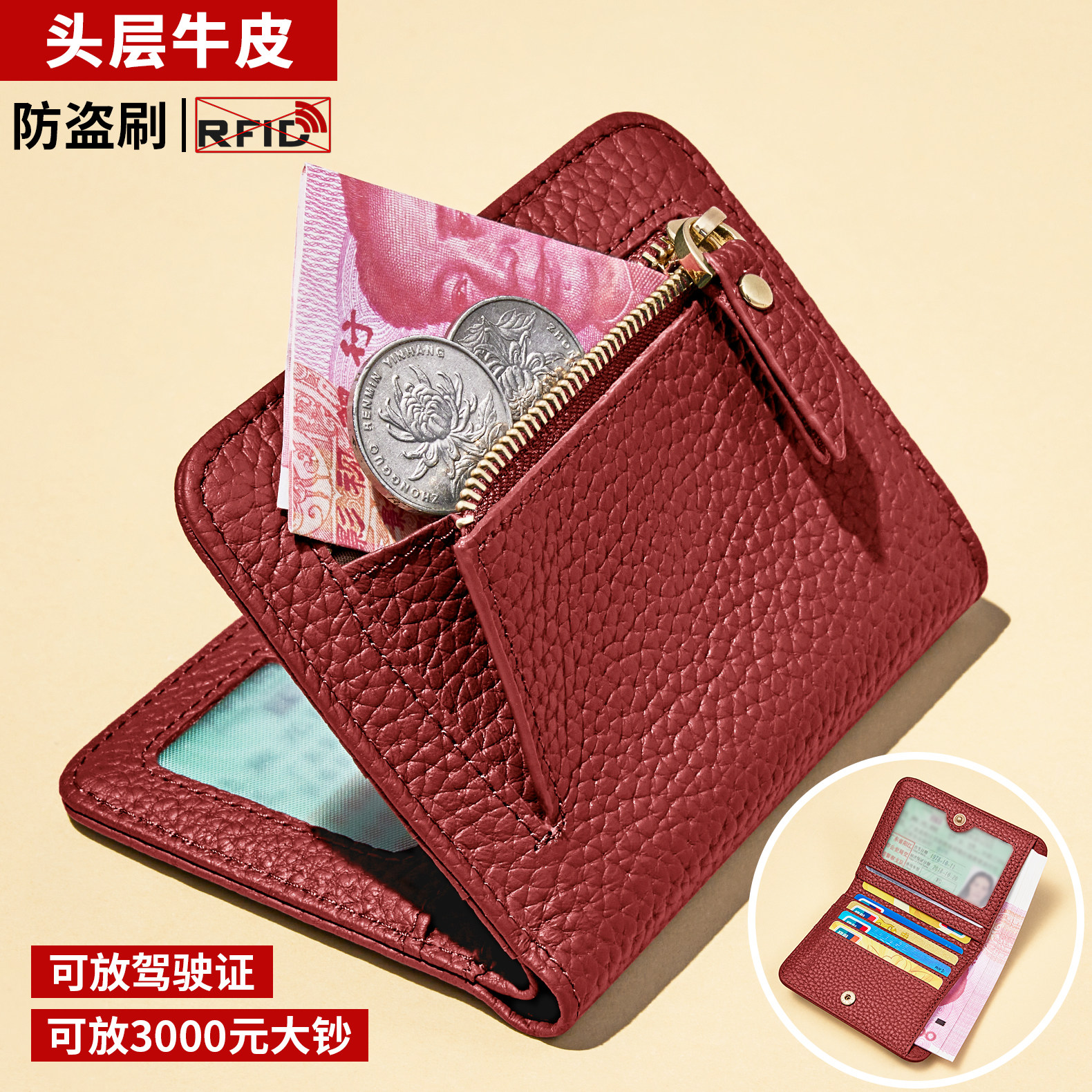 新款短款头层牛皮小钱包女款真皮超薄多功能钱夹女拉链零钱包女