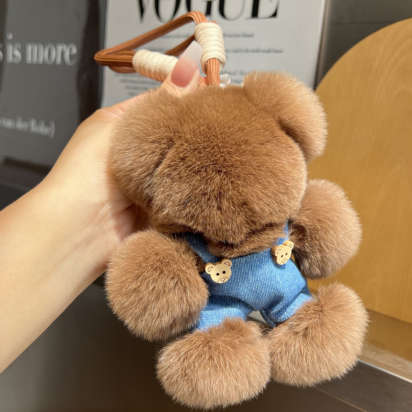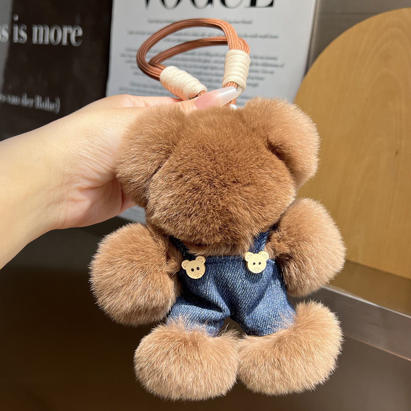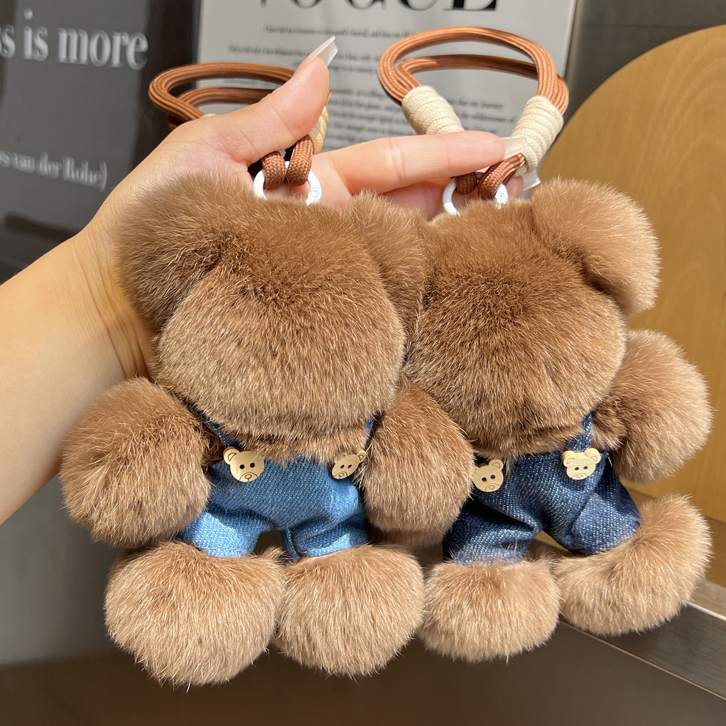 可爱真獭兔毛小熊汽车钥匙扣挂件ins网红毛绒公仔玩偶书包包挂饰