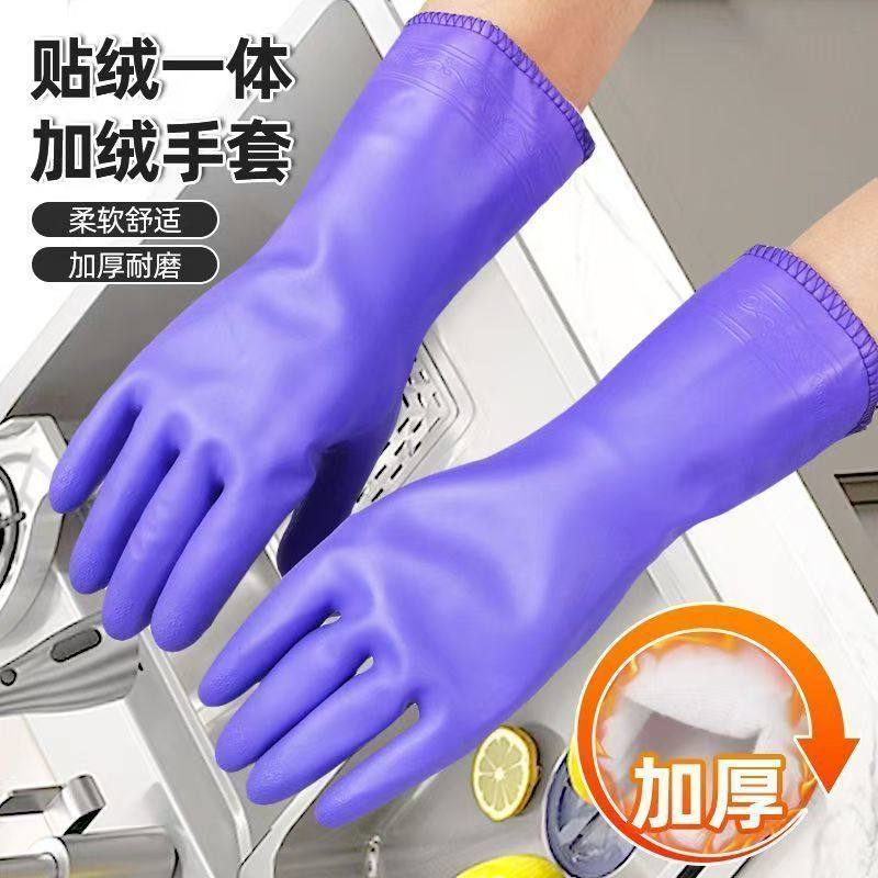 橡胶手套加厚冬季耐磨胶皮洗碗洗衣加绒防水洗车工作劳保家务厨房