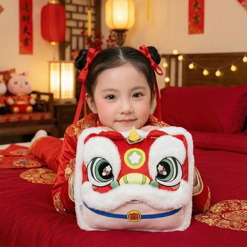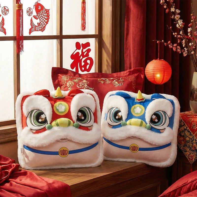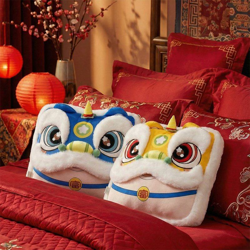 2026国潮醒狮抱枕公仔客厅沙发靠垫马年吉祥物抱枕毯子二合一定制