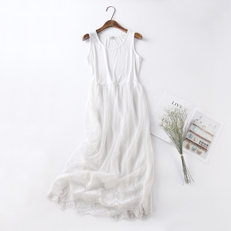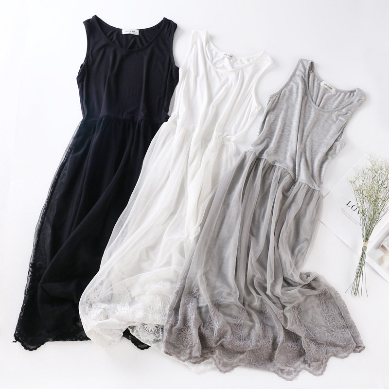 秋冬连衣裙及踝长款吊带裙内搭刺绣蕾丝裙打底纱裙背心裙网纱长裙