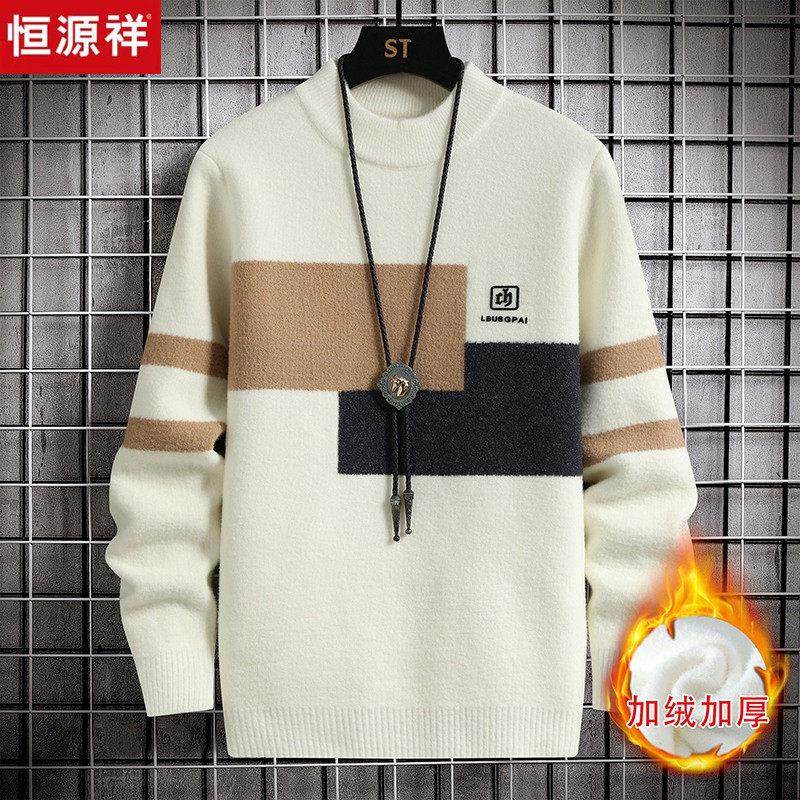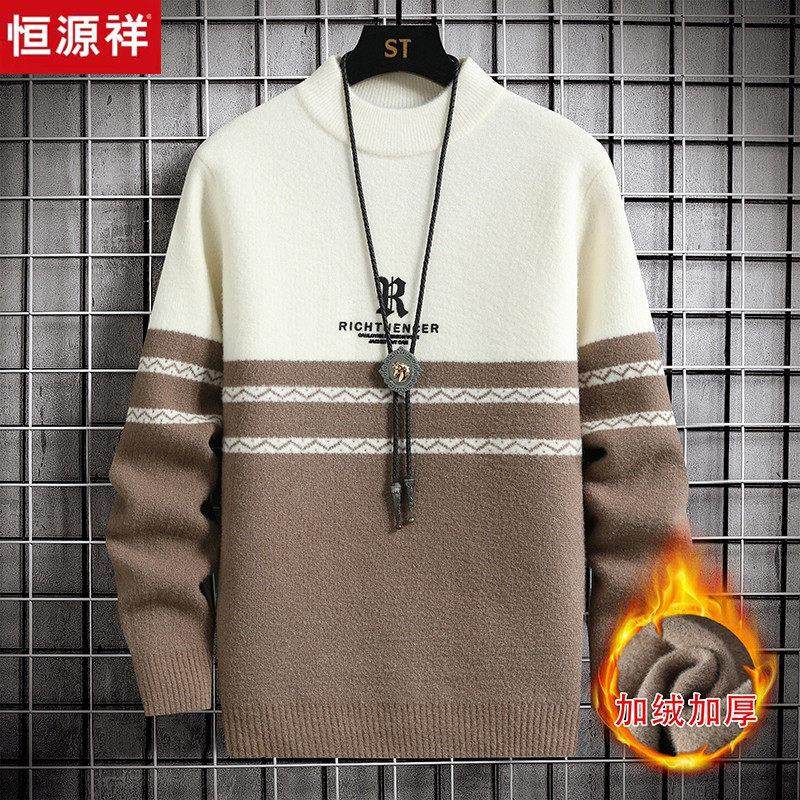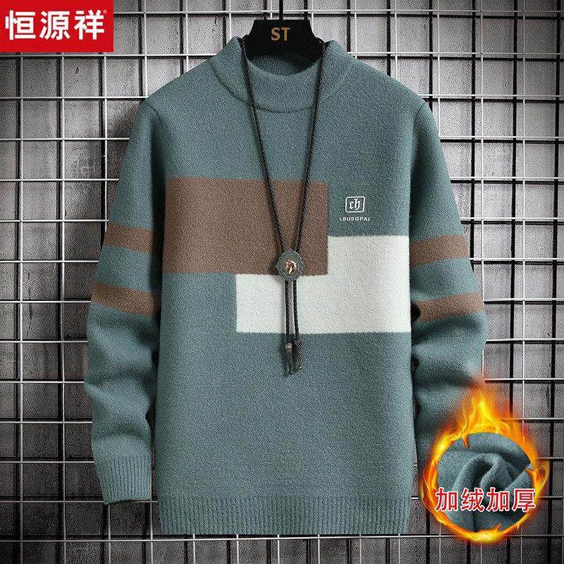 恒源祥青少年毛衣男冬季加绒加厚保暖2024新款初中高中学生羊毛衫