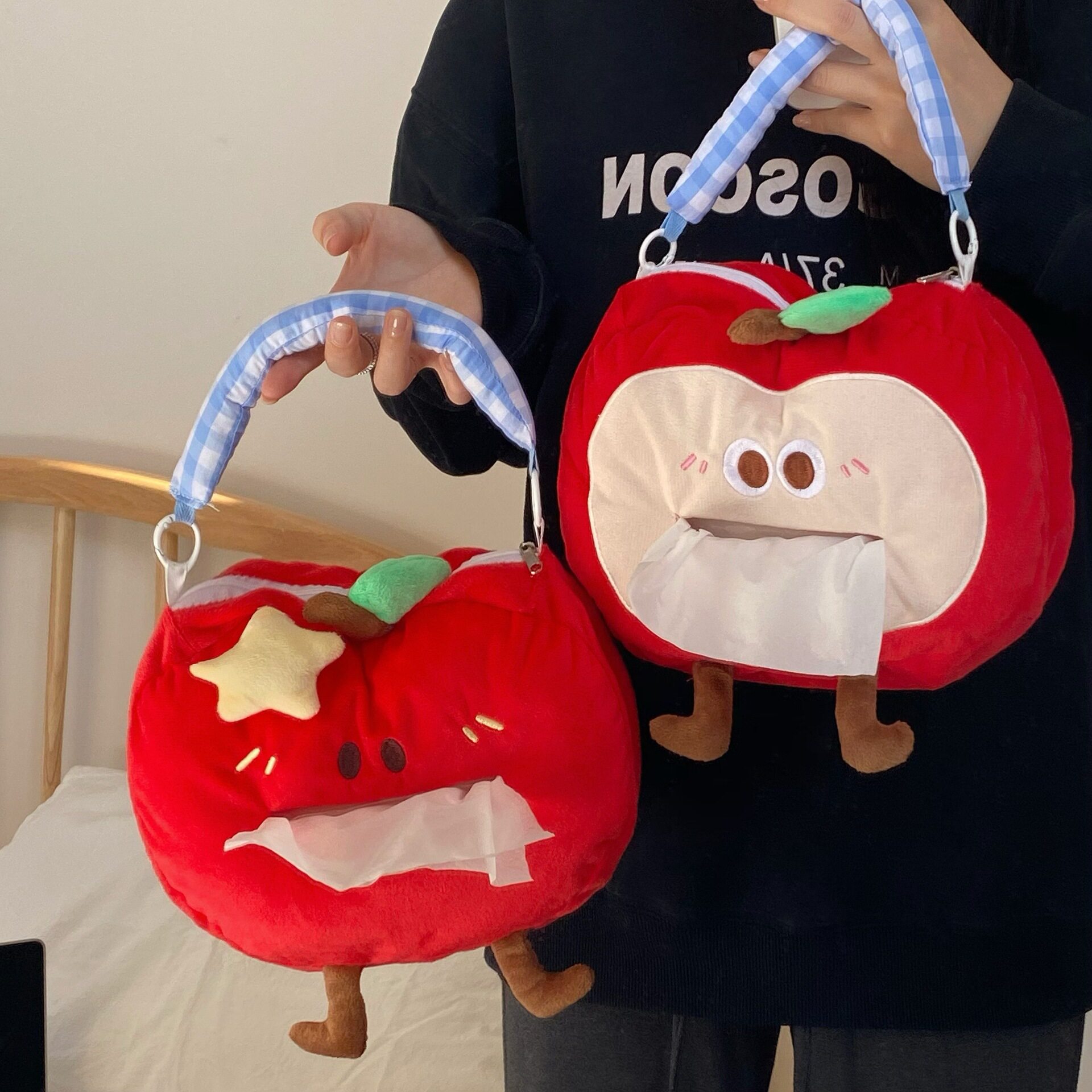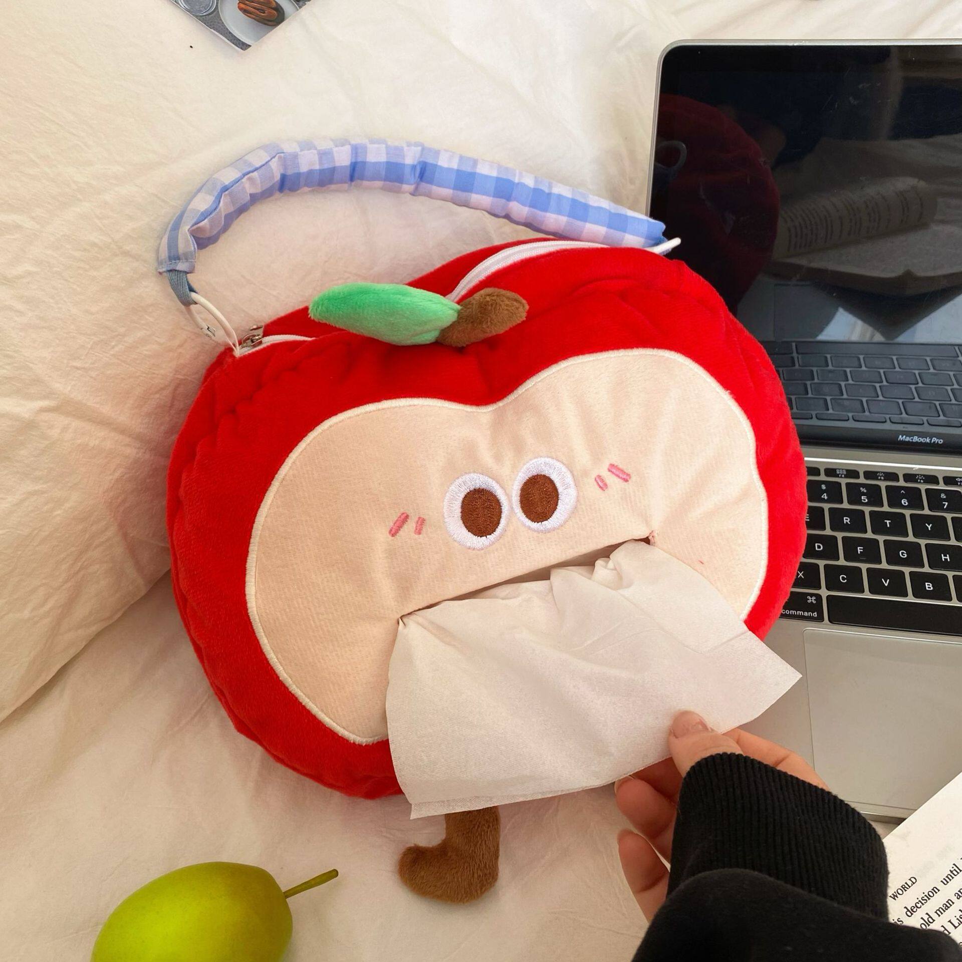 创意苹果纸巾盒客厅车载纸巾袋抽纸盒学生宿舍悬挂式抽纸收纳袋
