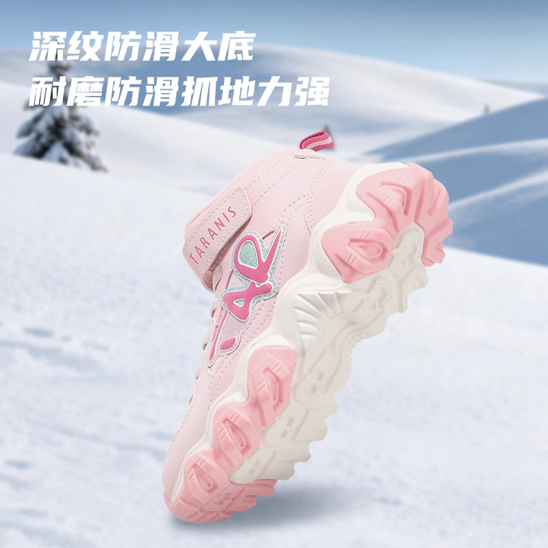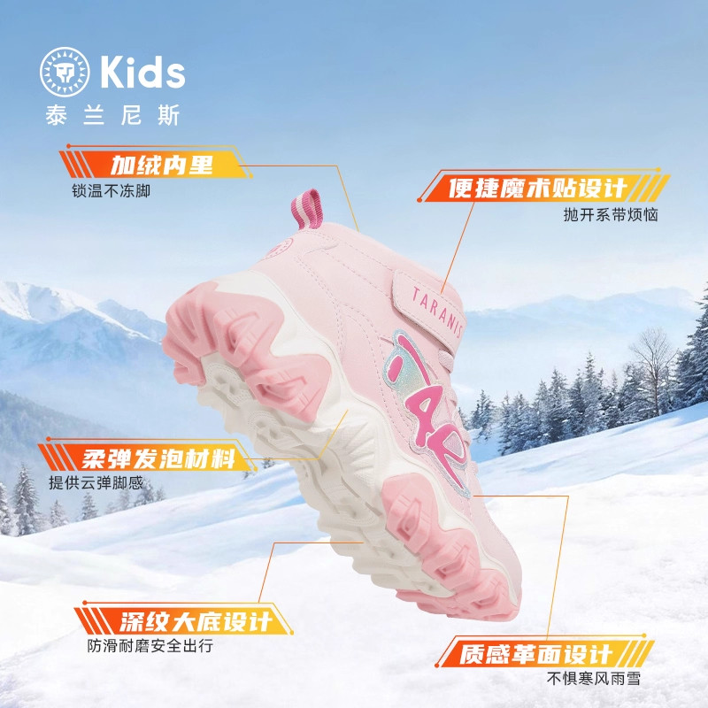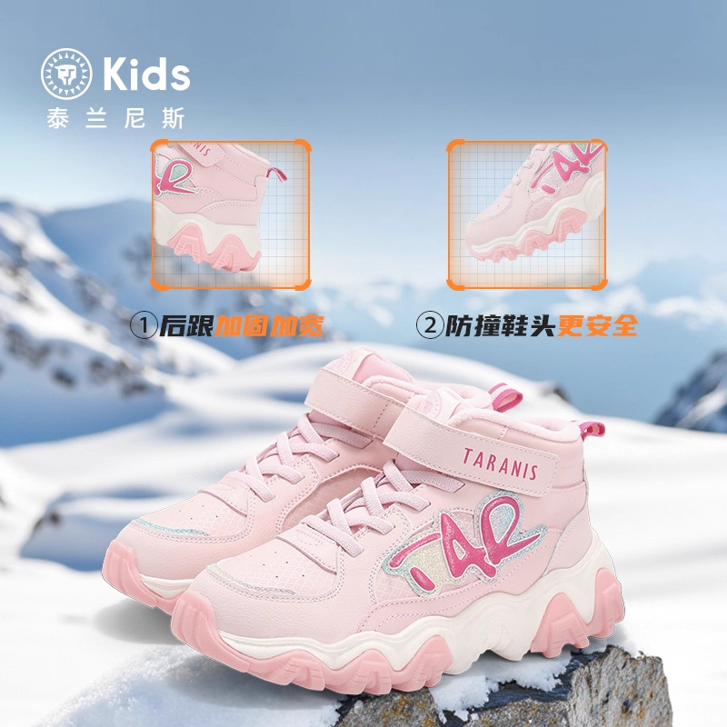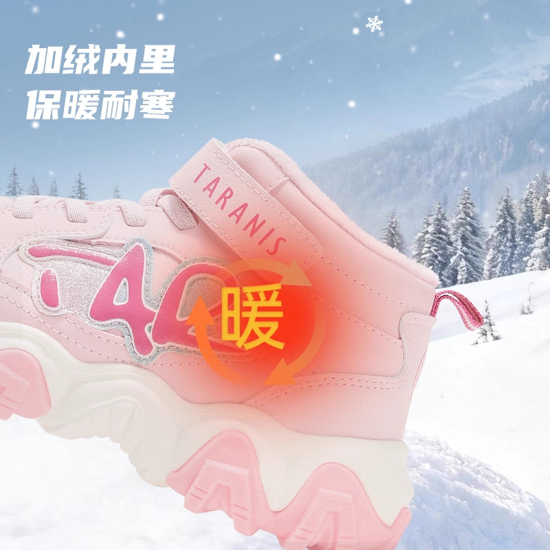 泰兰尼斯2025新款kids女童鞋子中大童运动靴儿童冬天加绒保暖棉靴