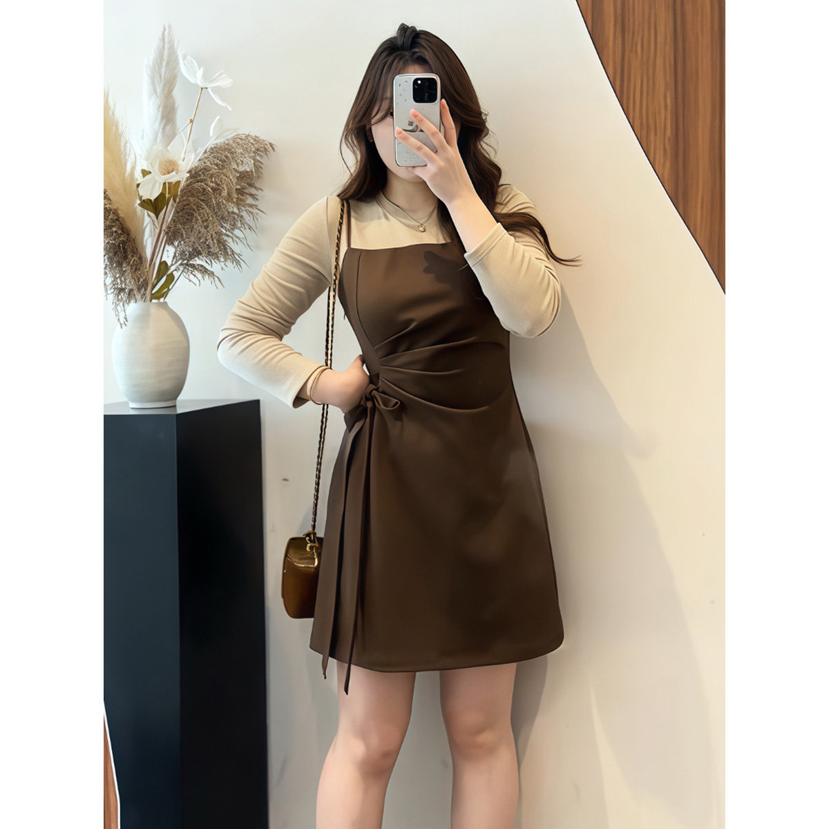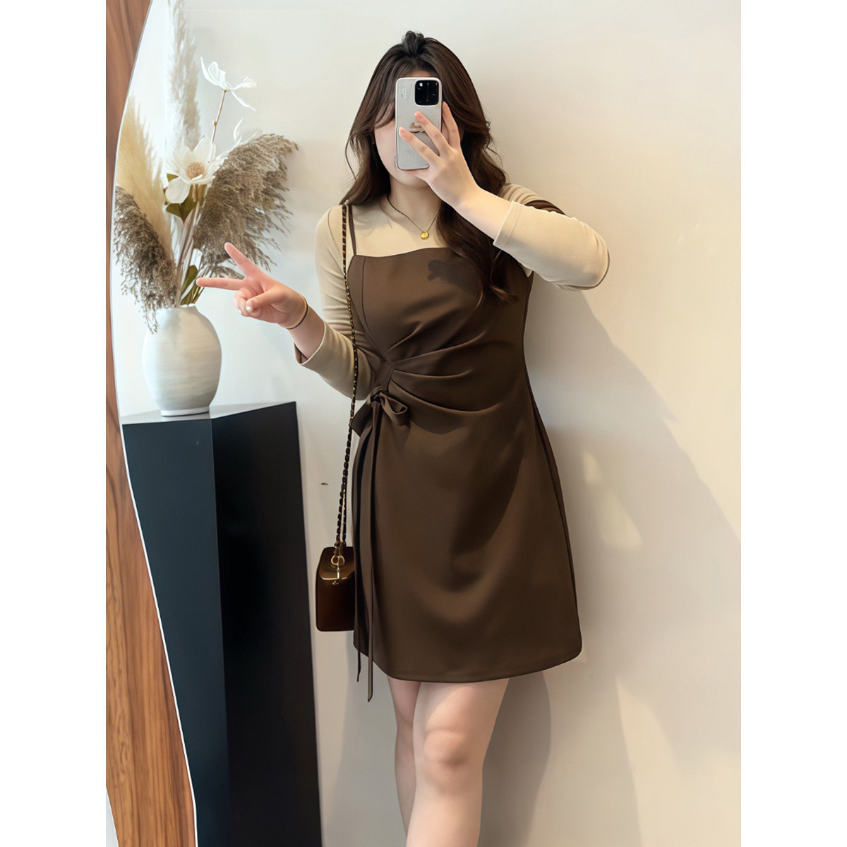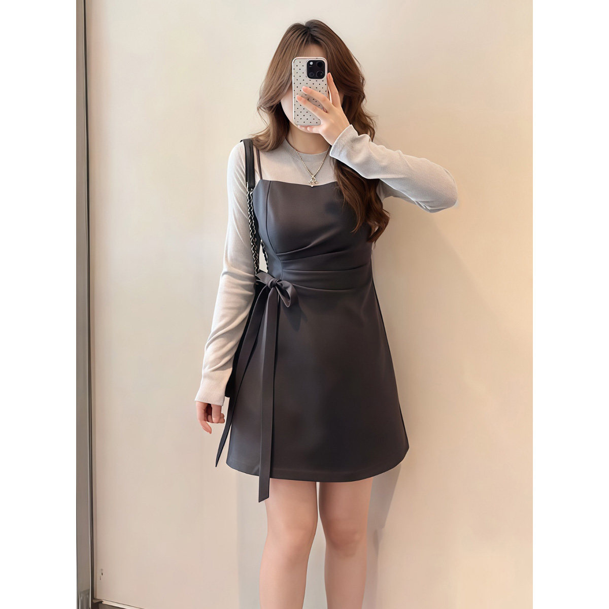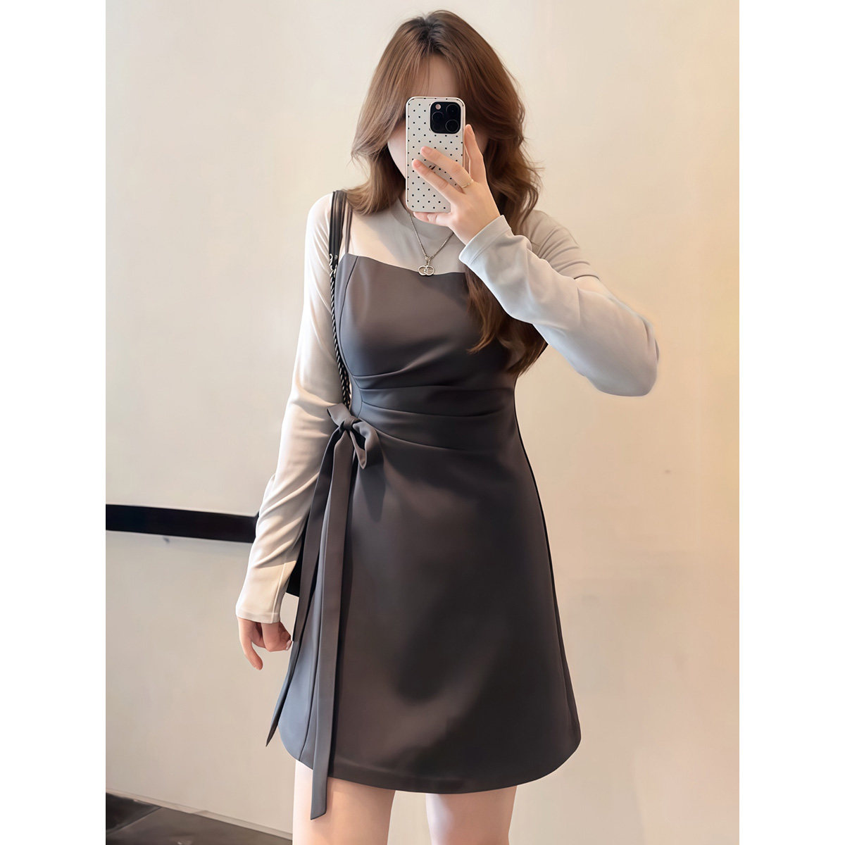 大码胖mm法式气质高级感百搭假两件长袖连衣裙女春季小众时尚裙子