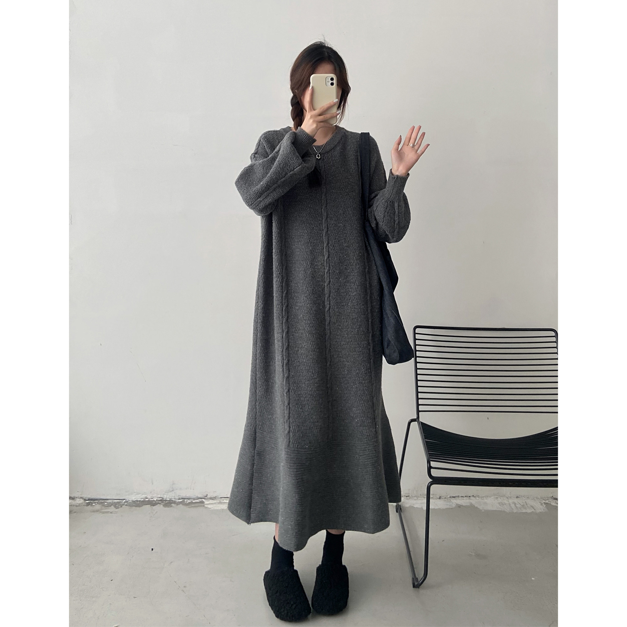 秋冬季新款大码女装胖mm宽松显瘦针织连衣裙加厚打底毛衣鱼尾裙子