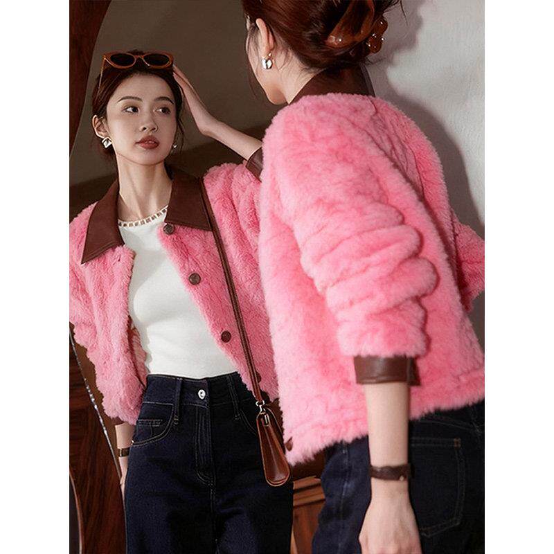 2025秋冬季新款粉色小香风羊羔毛外套女短款加厚高级感毛绒上衣