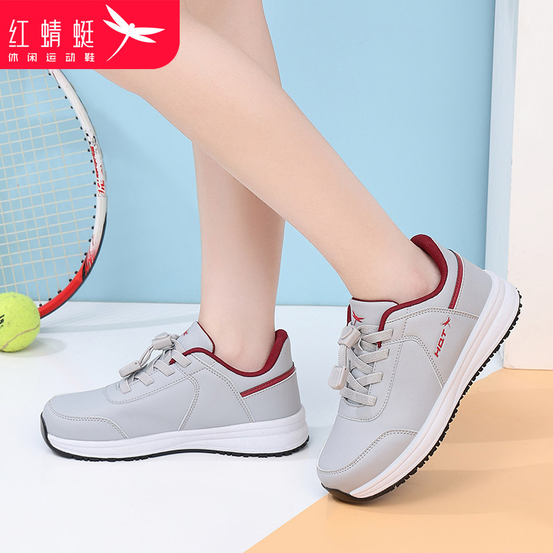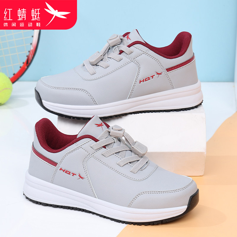 红蜻蜓女鞋轻便软底健步鞋女款春季新款中老年妈妈皮面休闲运动鞋