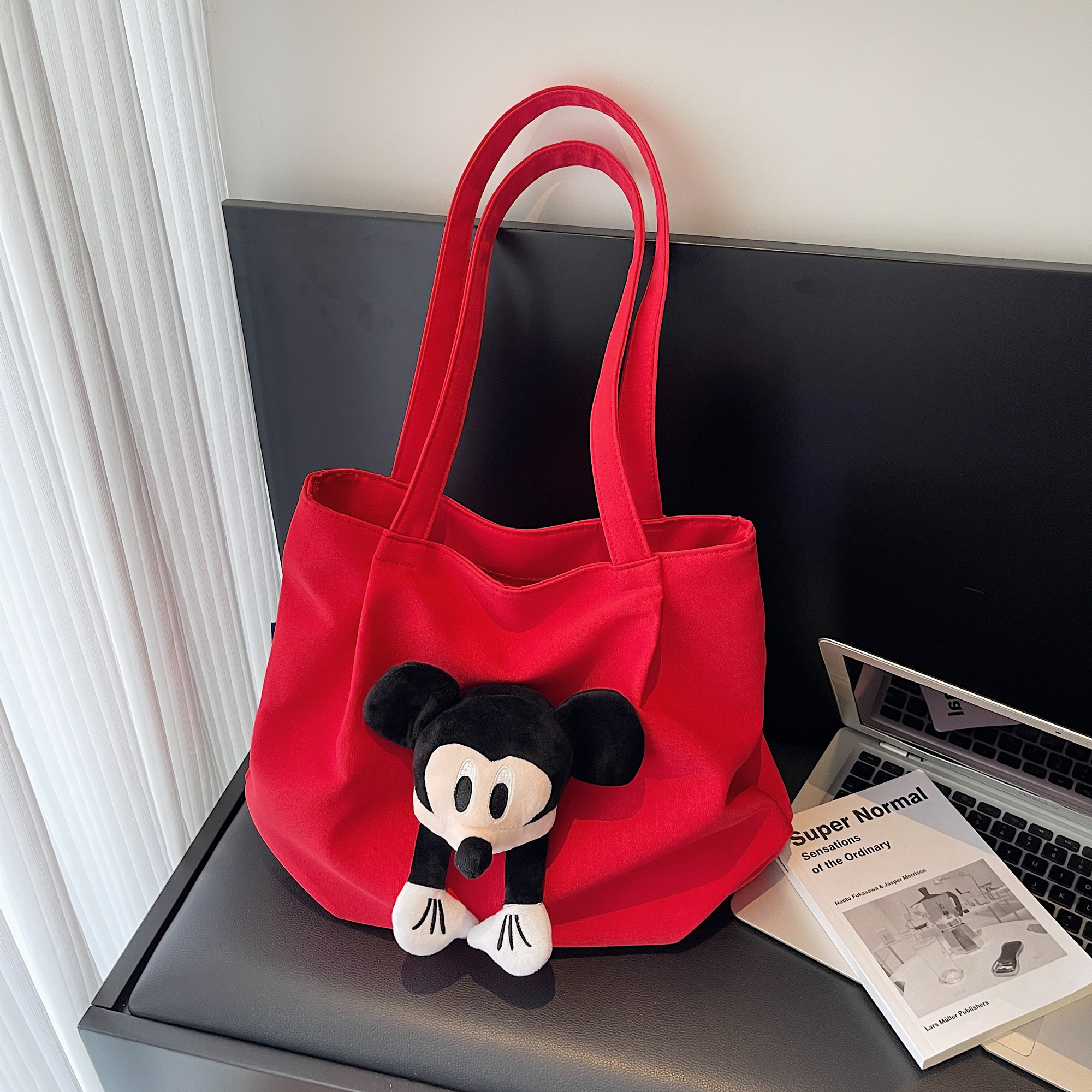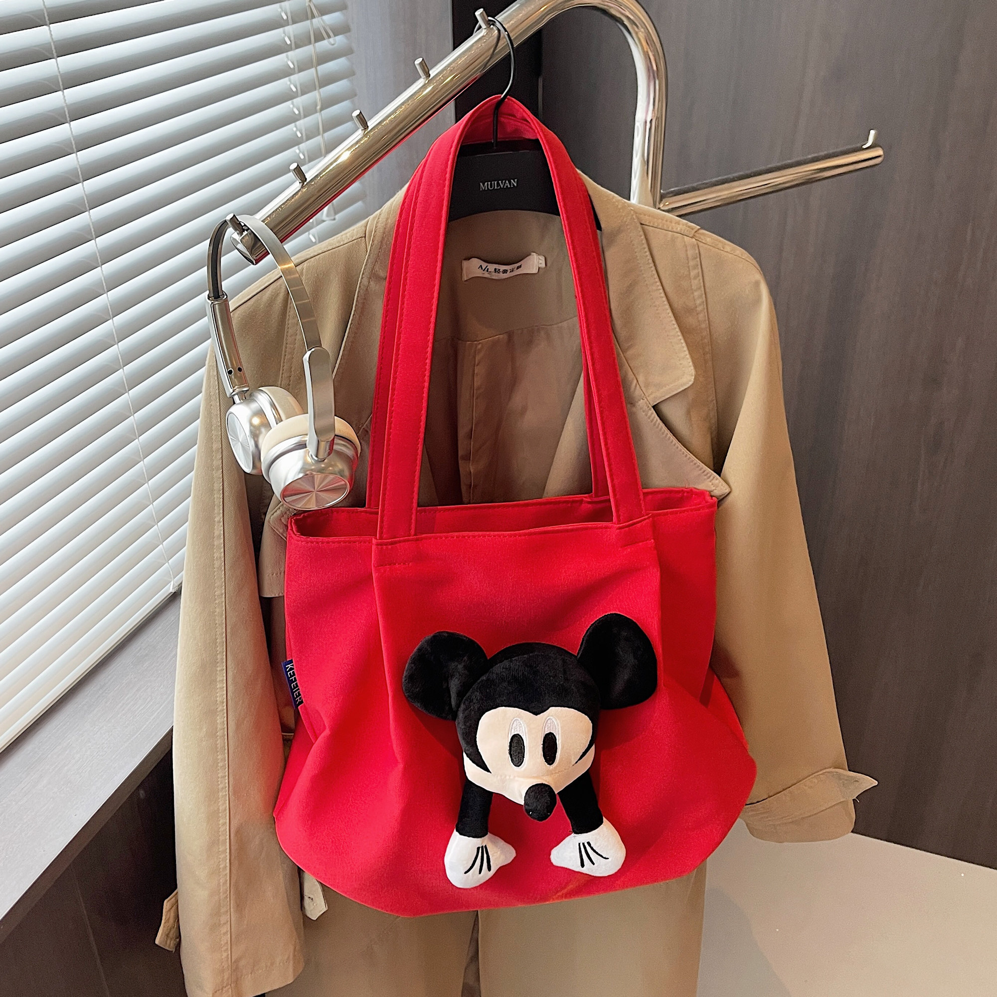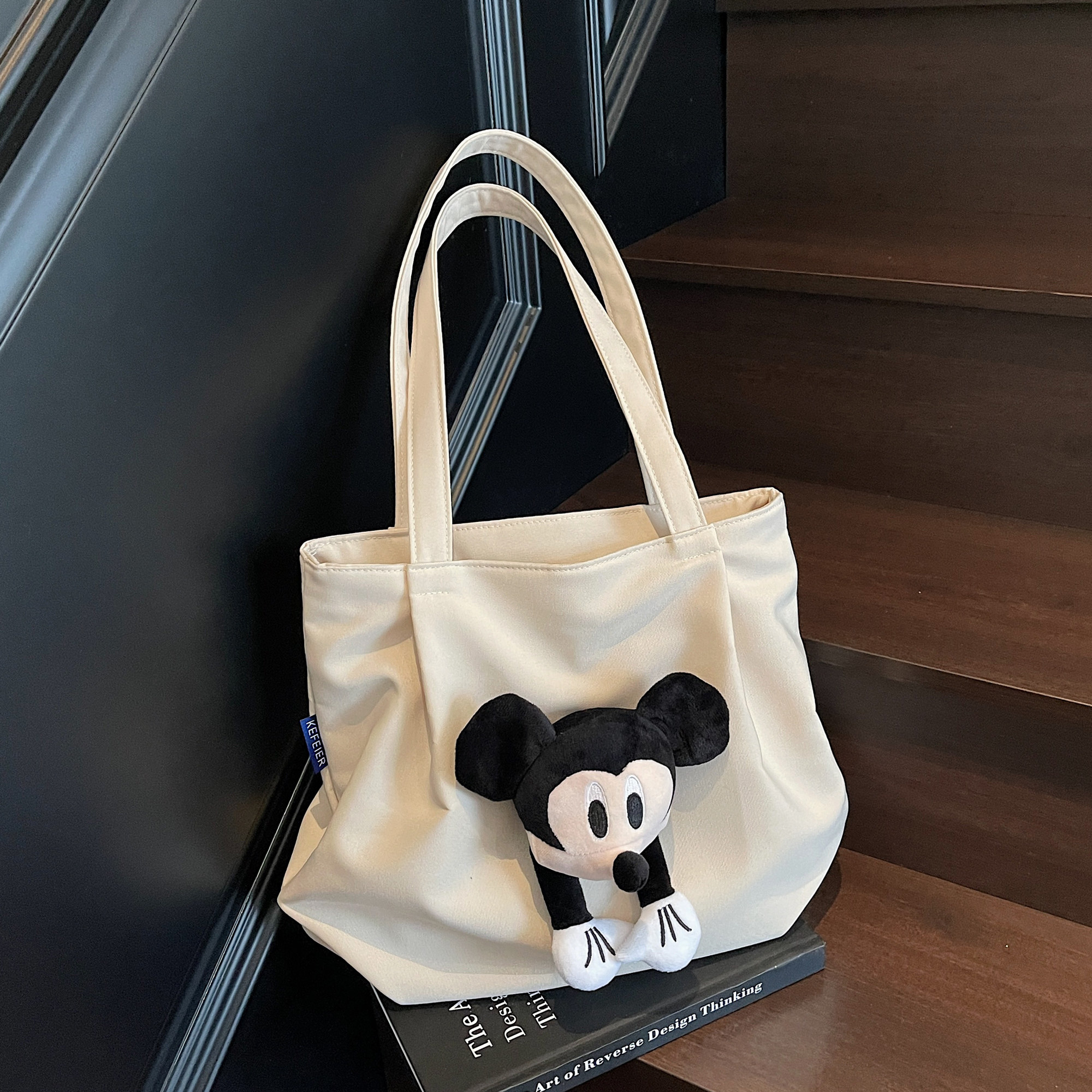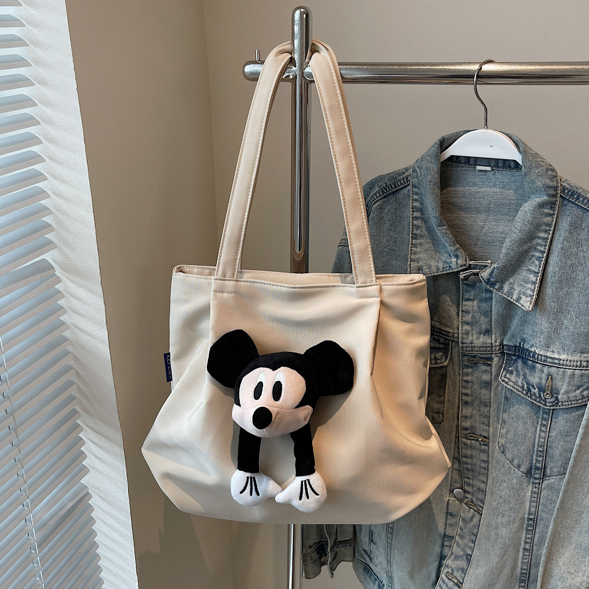 可爱休闲帆布包包女大容量带拉链通勤托特包上课旅行包手提单肩包
