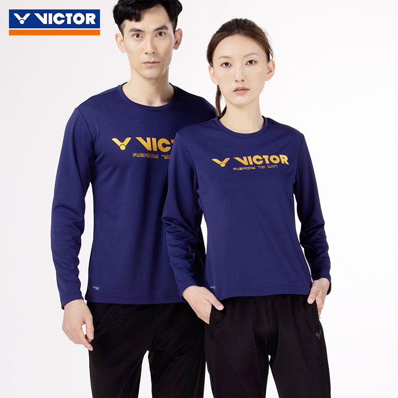 2025秋冬新款victor胜利羽毛球服长袖T恤男款速干保暖运动服健身