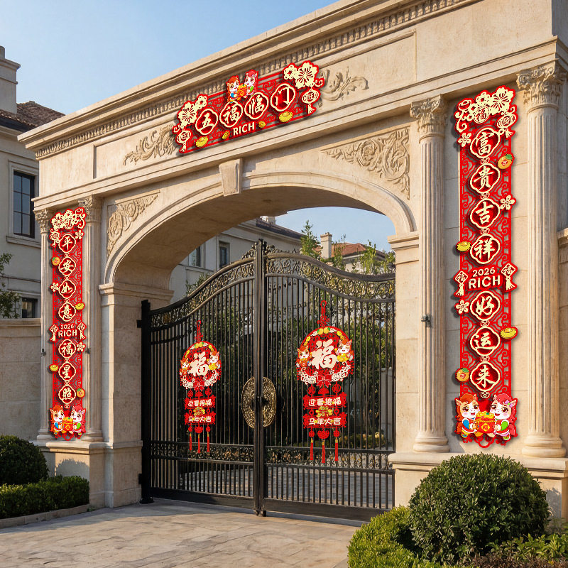 对联马年2026新款创意别墅大门新年装饰3M大尺寸春节布置品福字贴