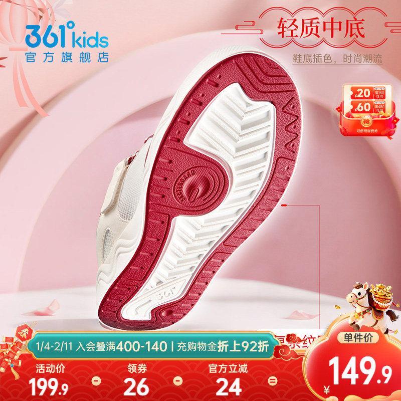 361度童鞋儿童面包鞋女童滑板鞋男童运动鞋春季新款红色新年鞋子