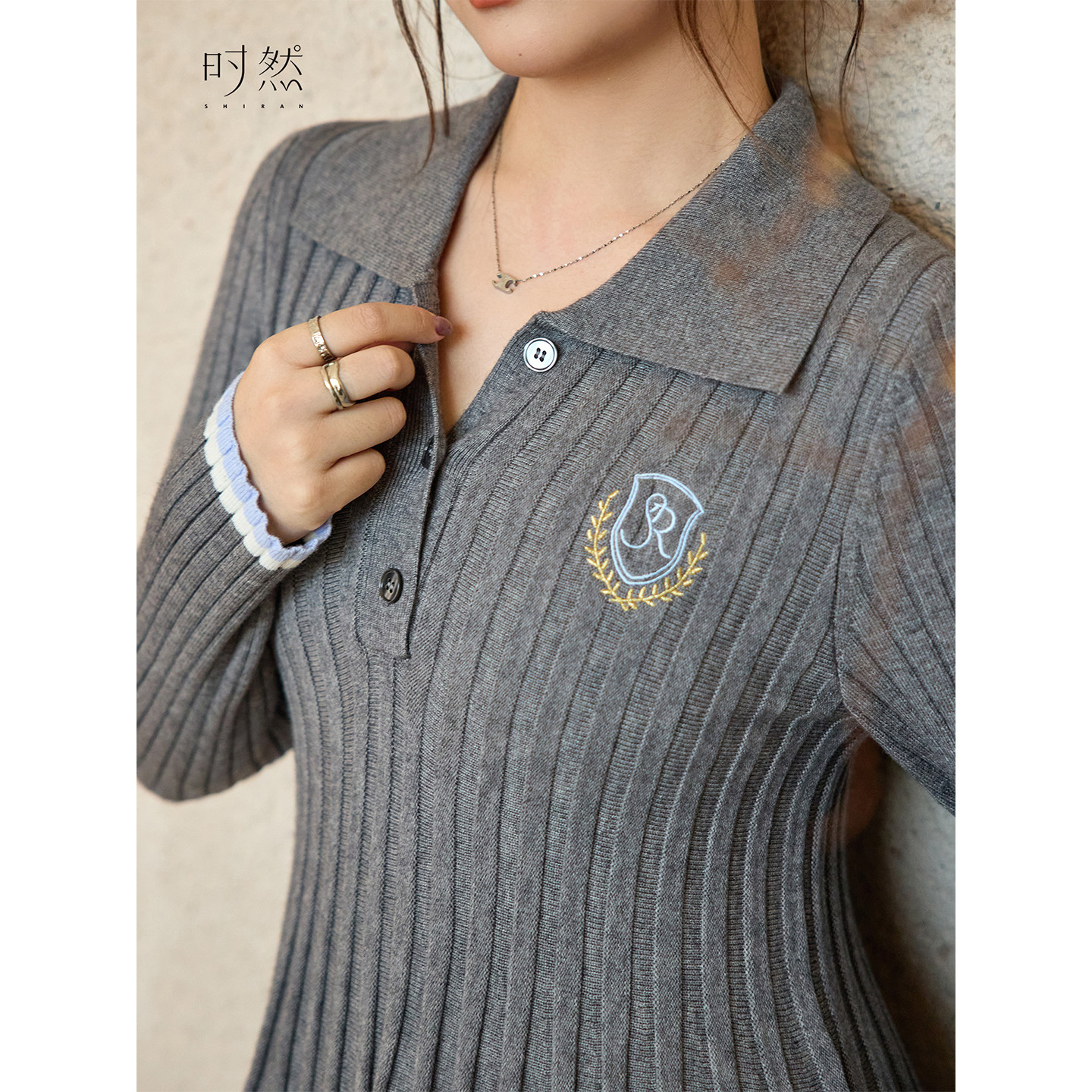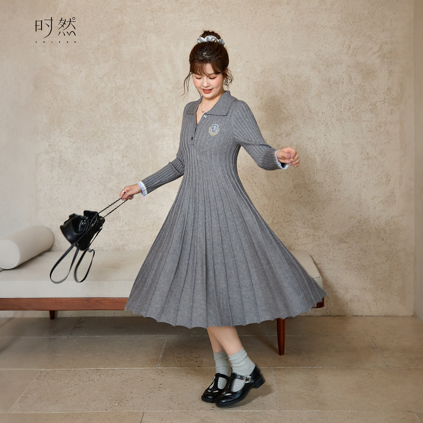时然大码女装针织连衣裙秋冬新款长裙胖mm收腰显瘦百搭冬装a字裙