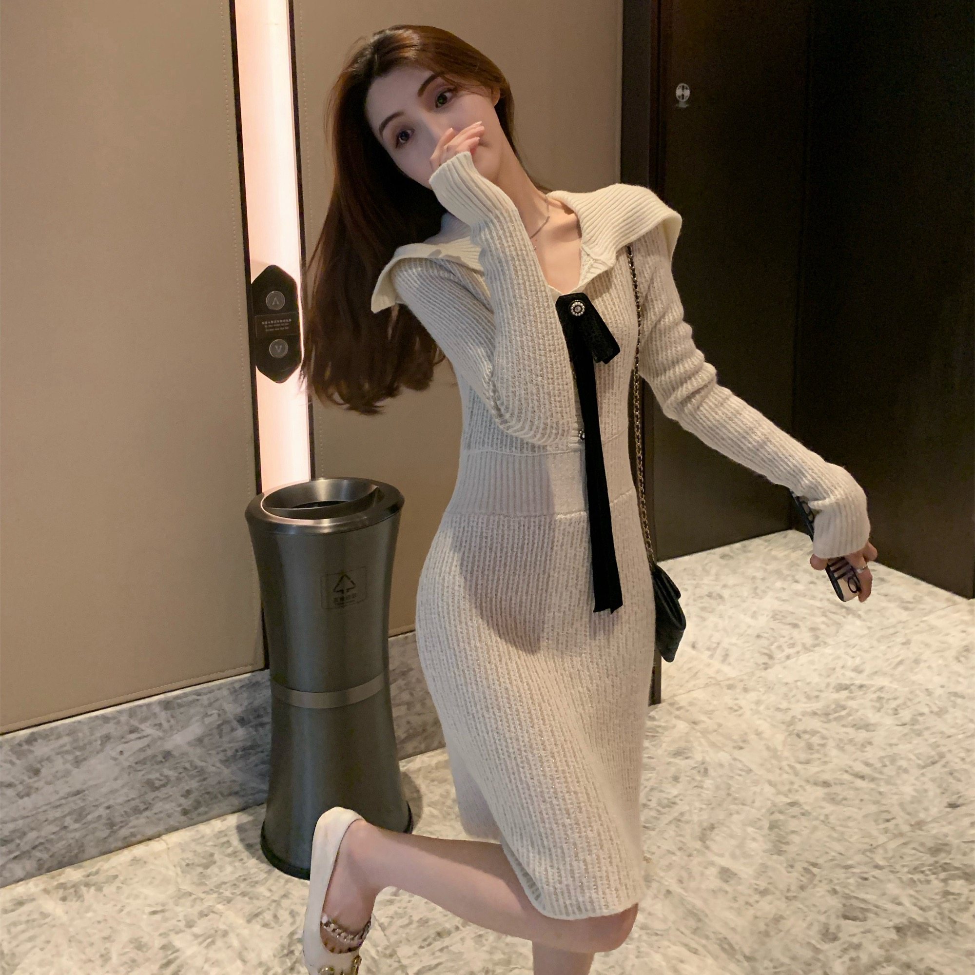 加小码XXXS女装冬季小个子150cm显高针织连衣裙高级感收腰裙时尚
