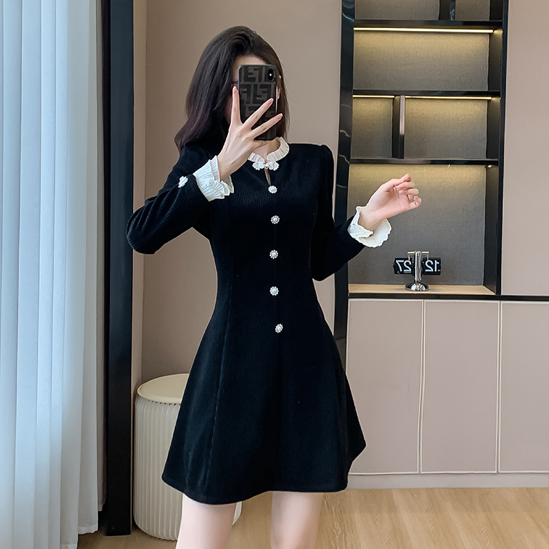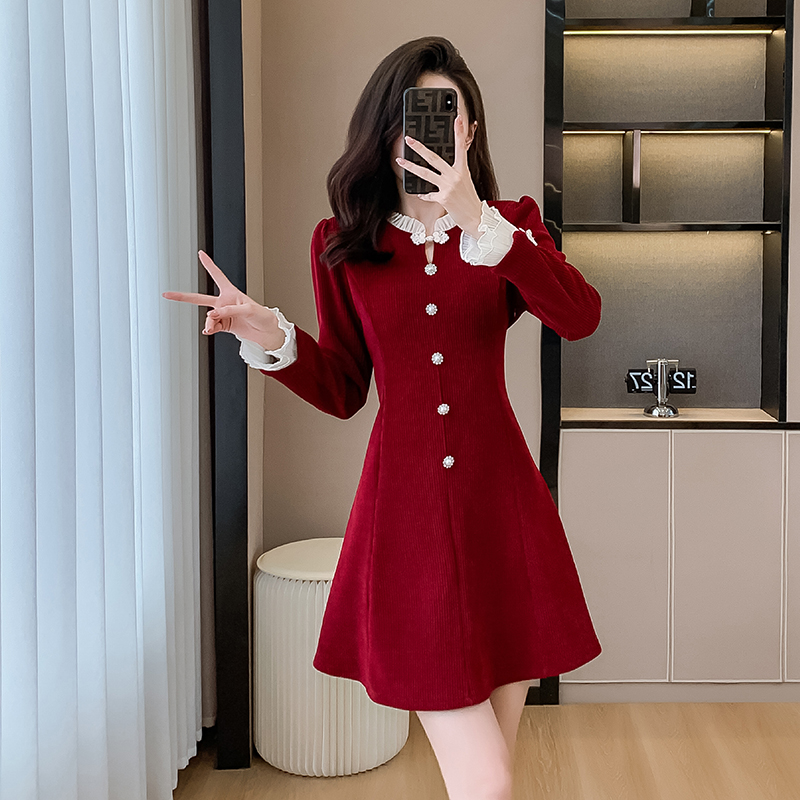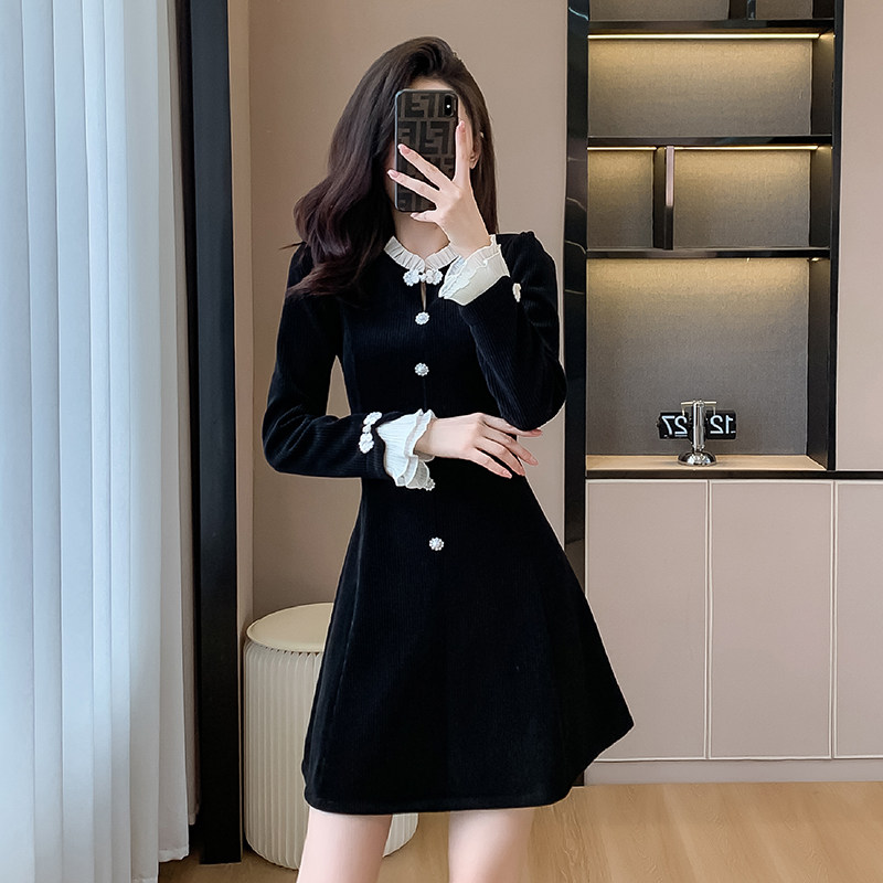 春秋小个子灯芯绒连衣裙女冬季复古高级感收腰显瘦假两件旗袍裙子
