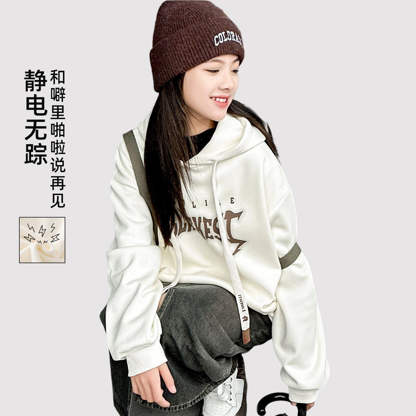 女童加绒连帽卫衣秋冬装2025新款女大童超好看上衣女孩初中生外套