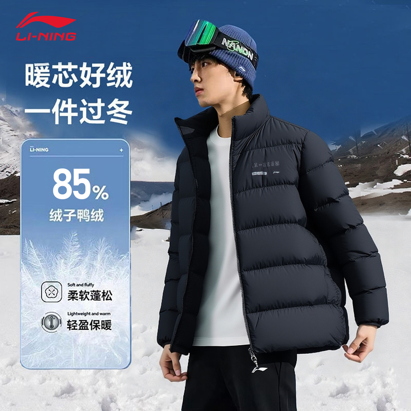 李宁男款短羽绒服男青少年高蓬松2026秋冬季新款保暖轻薄外套排骨