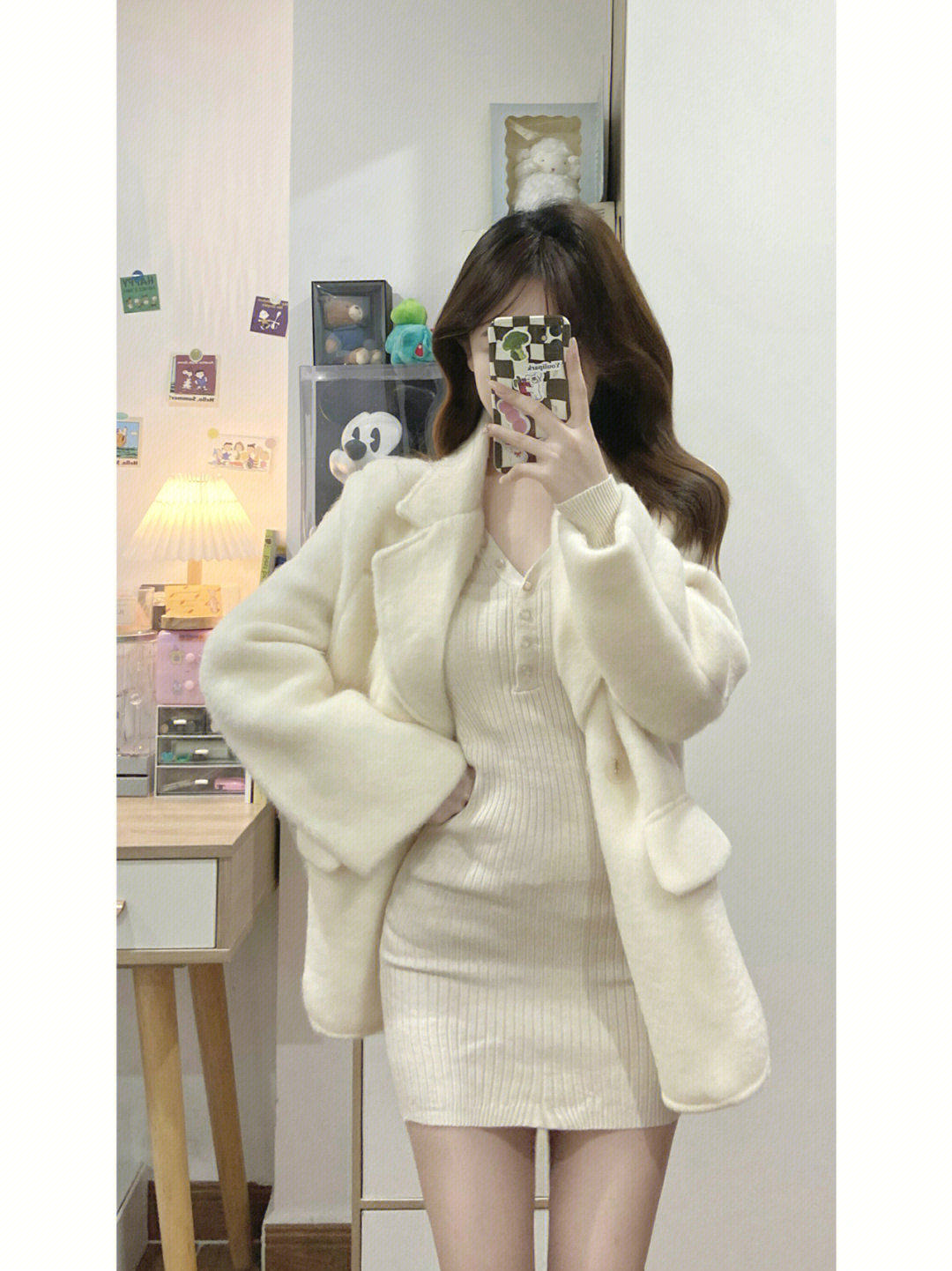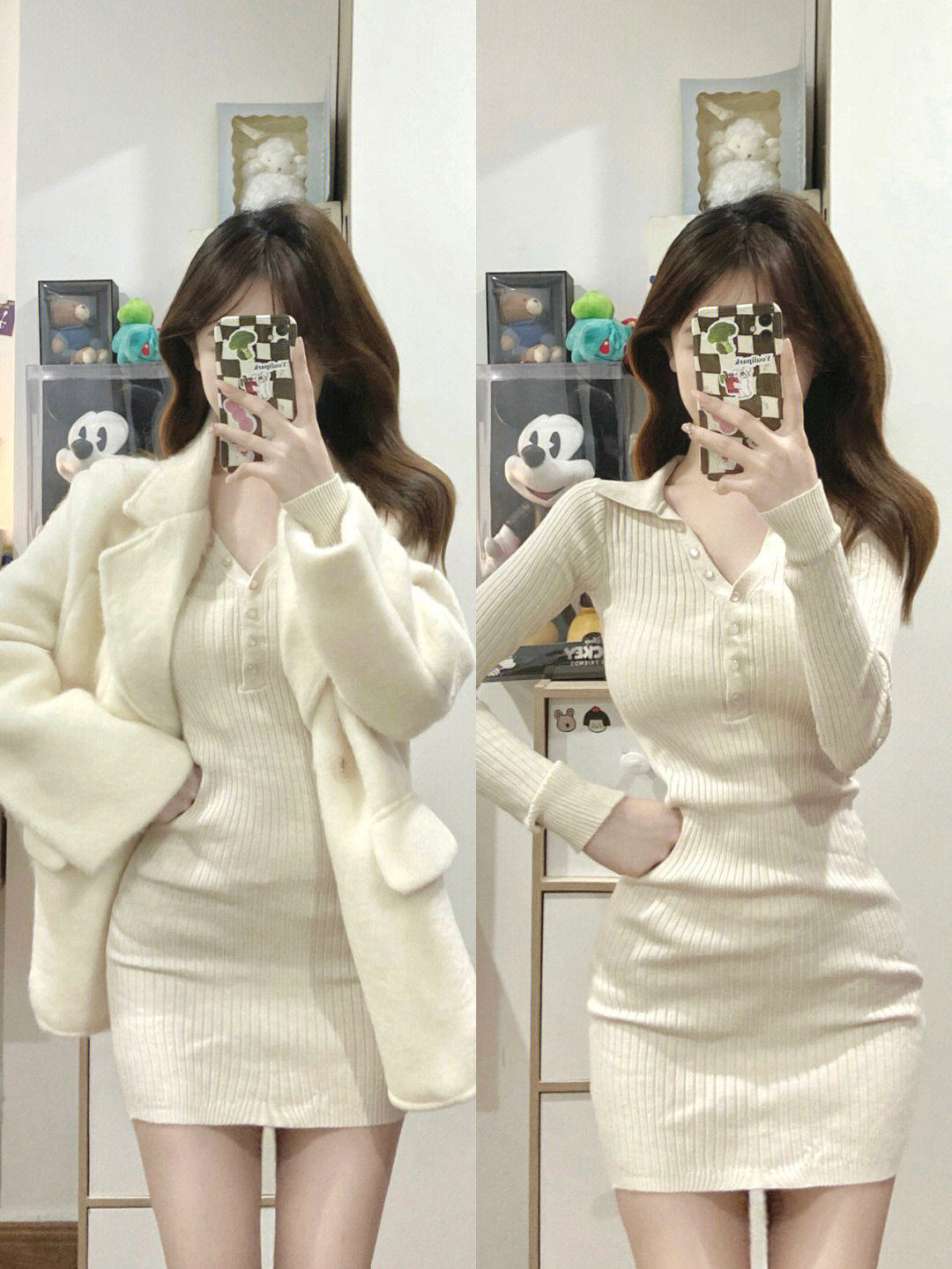白色polo领针织连衣裙女春季纯欲风辣妹修身显瘦长袖内搭打底短裙