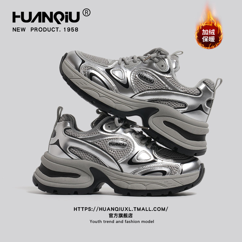 环球老爹鞋女鞋秋冬季加绒轻便软底超轻防滑厚底复古休闲运动鞋子