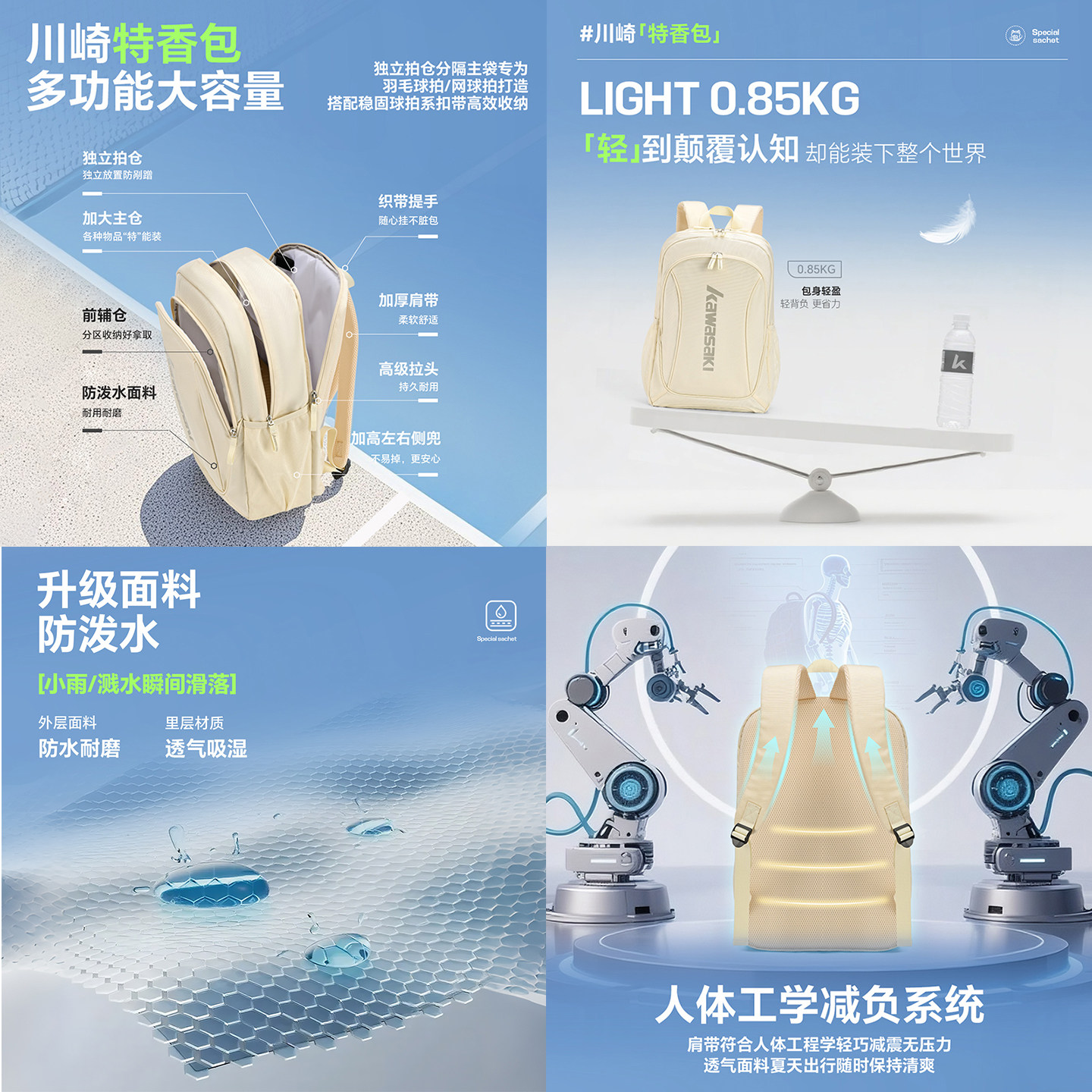 311线报网描述:川崎KAWASAKI羽毛球包双肩包