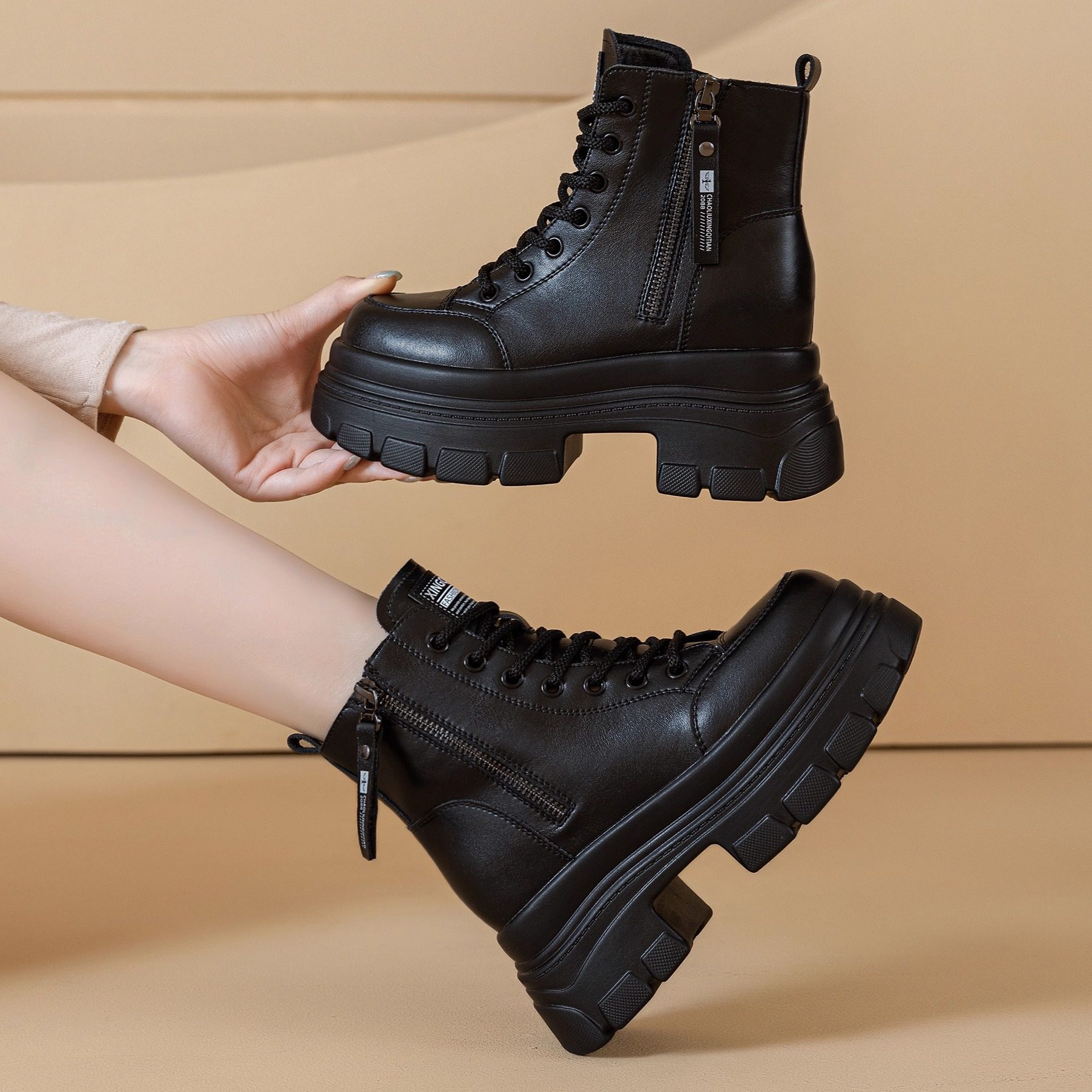 英伦风马丁靴女内增高小个子2026新款冬季加绒棉靴子10cm厚底短靴