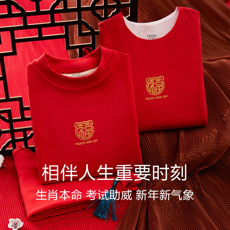红豆儿童本命年内衣套装兔年红色男童女童中大童抗菌中厚秋衣秋裤