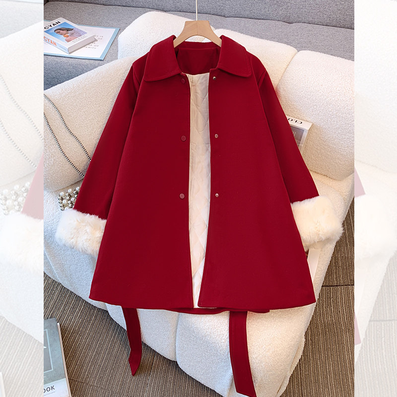 结婚红色小香风毛呢外套女2025秋冬季新款夹棉加厚中长款呢子大衣