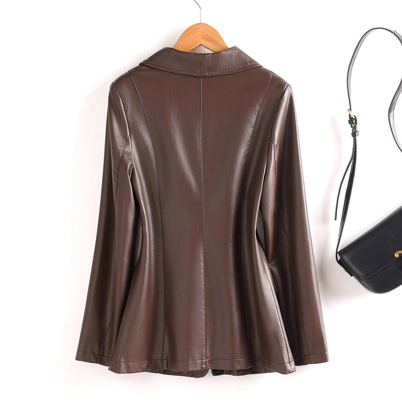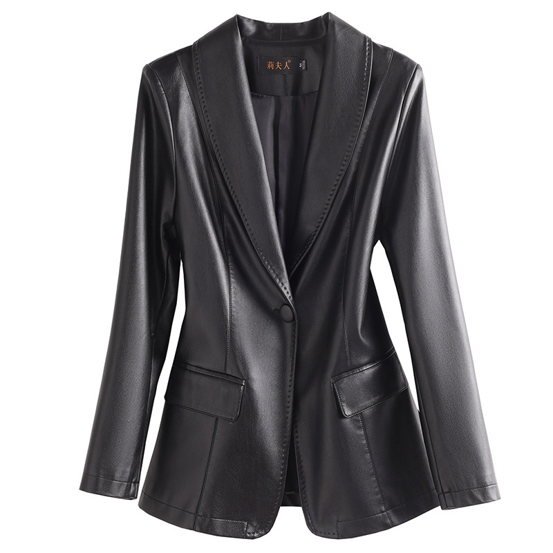 2025春秋新款海宁绵羊皮真皮皮衣女短款小西装外套修身爆款皮夹克